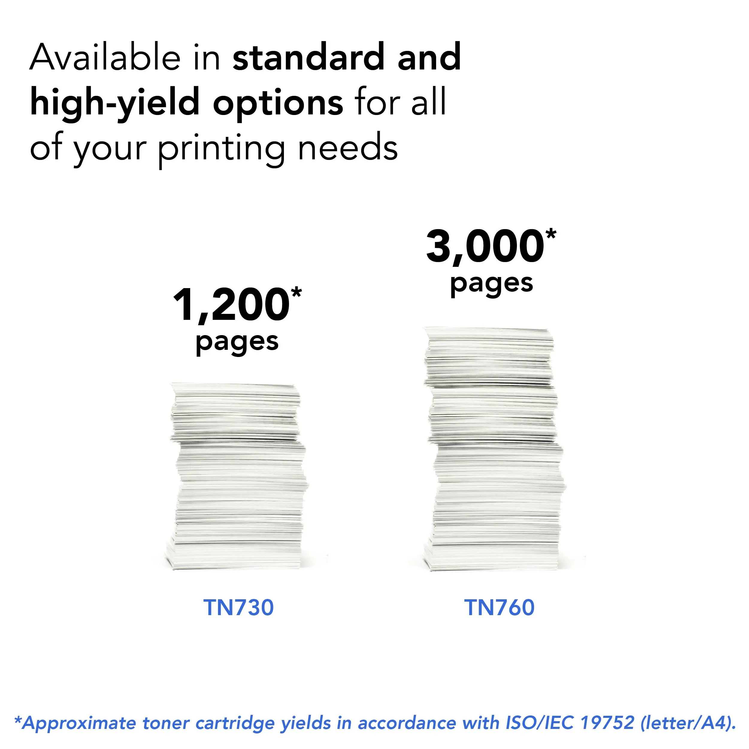 Toner cartridge is designed for use with Brother DCP-L2550DW, HL-L2350DW, HL-L2370DW, HL-L2370DW XL, HL-L2390DW, HL-L2395DW, MFC-L2710DW, MFC-L2750DW and MFC-L2750DW XL. It is part of a complete intelligent printing system to provide superior quality. Brother Genuine toner is precisely balanced for even flow and consistent toner distribution. Use only Brother Genuine replacement cartridges for superior results. Cartridge yields approximately 1,200 pages.