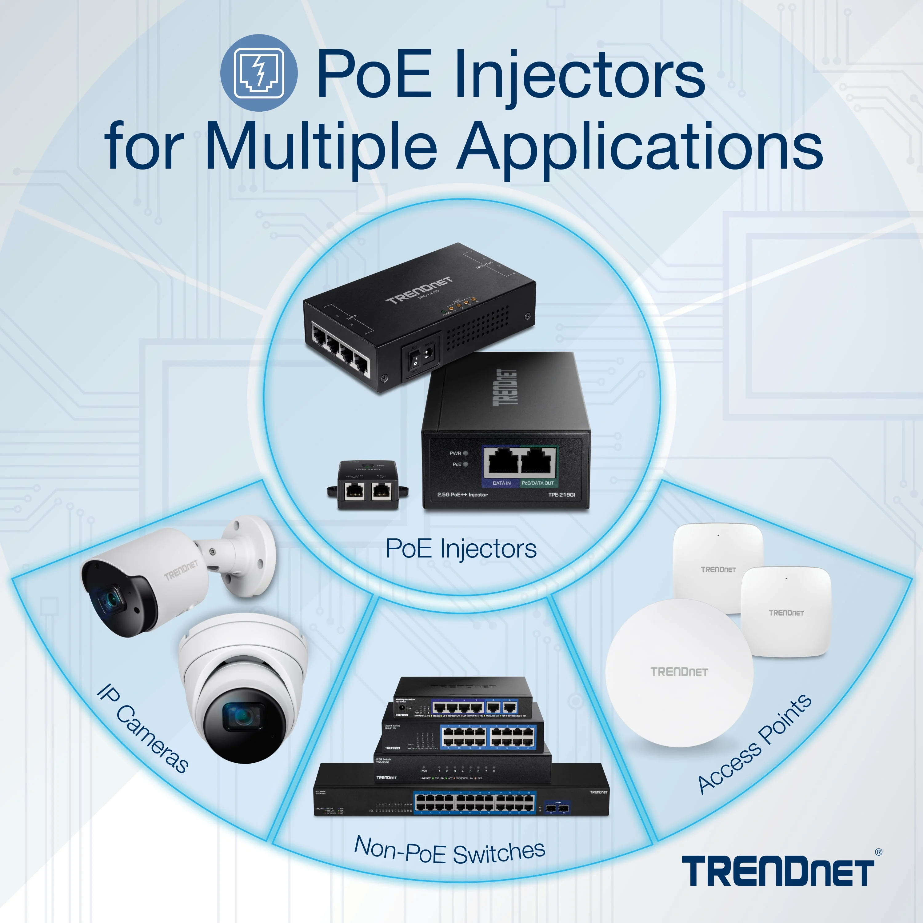 The 10G PoE++ Injector seamlessly combines electrical power with a 10GBASE-T network connection, delivering a robust 10G PoE++ network signal for high-performance applications.