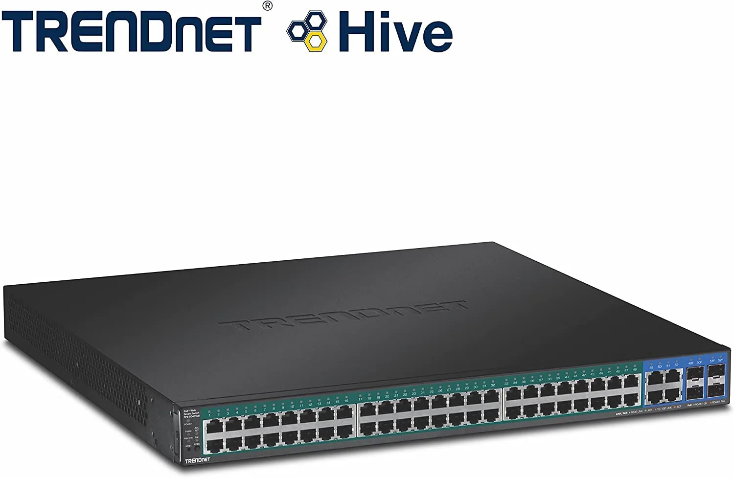 TRENDnet’s 52-Port Gigabit Web Smart PoE+ Switch, model TPE-5048WS, delivers advanced management features with a 104Gbps switching capacity. This rack mountable IPv6 ready switch comes with an intuitive web-based interface. Advanced traffic management controls, troubleshooting, and SNMP monitoring make this a powerful solution for SMB networks. The TPE-5048WS provides 48 gigabit PoE+ ports with a total power budget of 740W, and four shared gigabit ports (RJ-45 or SFP). The PoE+ standard supplies up to 30W of power per port for devices such as high power wireless access points, PTZ (Pan Tilt Zoom) Internet cameras, and VoIP telephony systems.