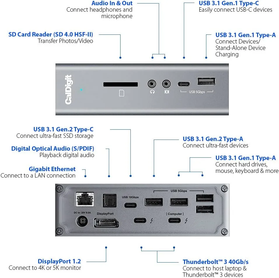 CalDigit TS3 Plus Thunderbolt 3 Dock - 87W Charging, 7X USB 3.1 Ports, USB-C Gen 2, DisplayPort, UHS-II SD Card Slot, Gigabit Ethernet for Mac & PC, Thunderbolt 4 Compatible (0.7m/2.3ft Cable)