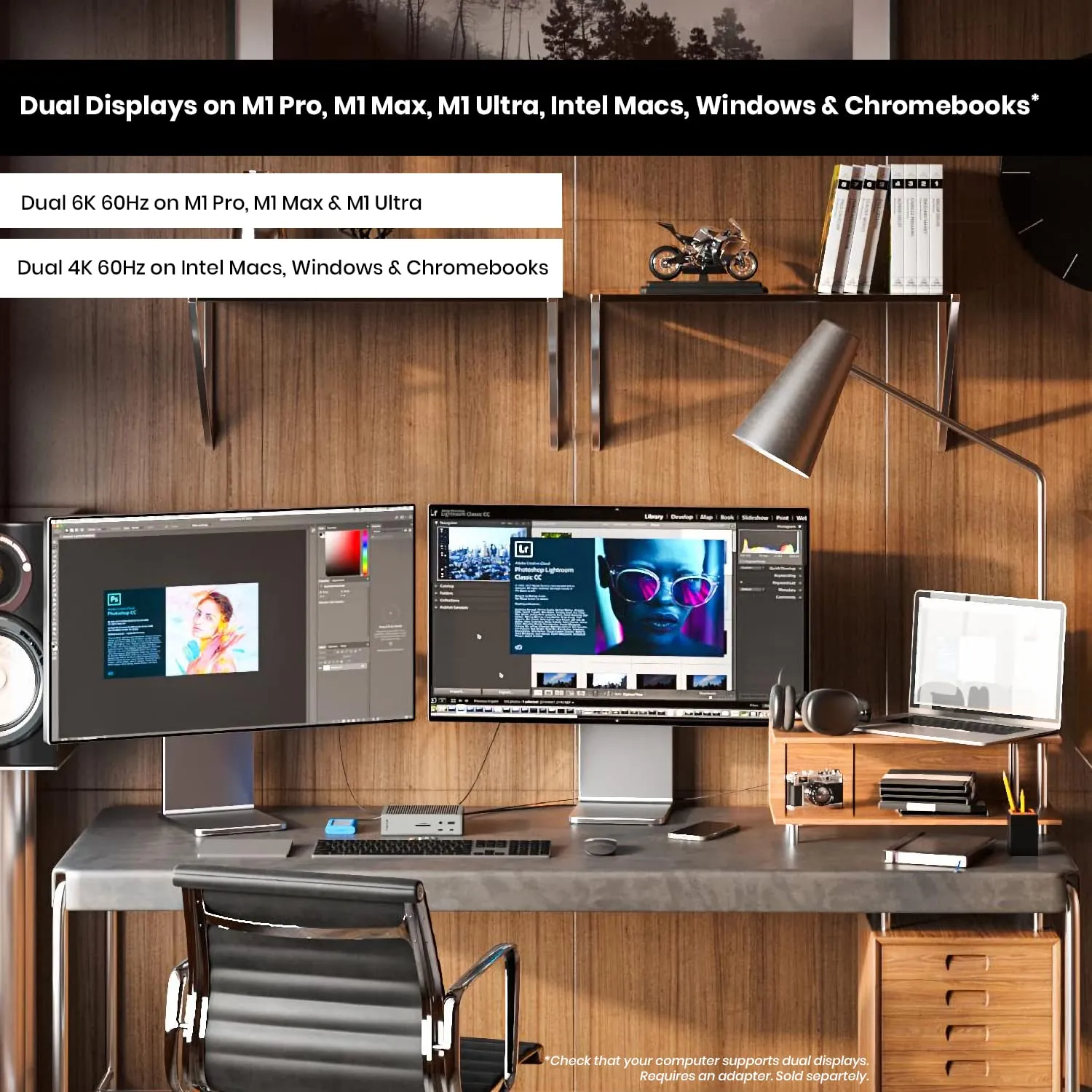 With multiple Thunderbolt ports, USB connections, and dual 4K display support, it is the perfect docking solution for any workstation.
