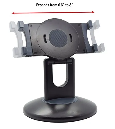 Tablet stand for Apple iPad provides easy, hands-free access to your tablet. Rotate, angle and swivel your tablet for optimum viewing in landscape of portrait position. Weighted swivel base provides excellent support. Easily attach and remove your tablet. Tablet stand is designed for 7" to 10" tablets. Stand is made from durable, ABS plastic.