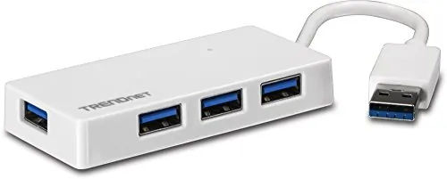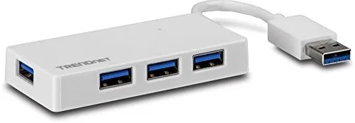 TRENDnet 4-Port USB 3.0 Mini Hub, model TU3-H4E, instantly adds four 5 Gbps SuperSpeed USB 3.0 ports to a computer. No CD installation required-simply plug in flash drives, storage enclosures, and other USB 3.0 devices at speeds ten times faster than a USB 2.0 connection. The TU3-H4E is also compatible with older USB 2.0 and 1.1 ports.