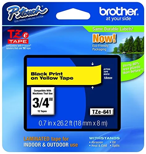 Laminated TZ Tape features standard adhesive designed for flat surfaces like office paper, file folders and binders. Tape resists water, grease and grime. Use in hot and cold environments as well as outdoors (water-resistant). Tape is best suited for smooth, flat surfaces. Use with Brother PT-1300, PT-1400, PT-1500, PT-1500PC, PT-1600, PT-1650, PT-1700, PT-1750, PT-1800, PT-1810, PT-1830, PT-1830C, PT-1830SC, PT-1830VP, PT-1880, PT-18R, PT-1900, PT-1910, PT-1950, PT-1960, PT-2030, PT-2030AD, PT-2030VP, PT-2100, PT-2110, PT-2200, PT-2210, PT-2300, PT-2310, PT-2400, PT-2410, PT-2430PC, PT-2500PC, PT-2600, PT-2610, PT-2700, PT-2710, PT-2730, PT-2730VP, PT-300, PT-300B, PT-310, PT-310B, PT-320, PT-330, PT-350, PT-3600, PT-520, PT-530, PT-540, PT-550, PT-580C, PT-9200DX, PT-9200PC, PT-9400, PT-9500PC, and PT-9600.