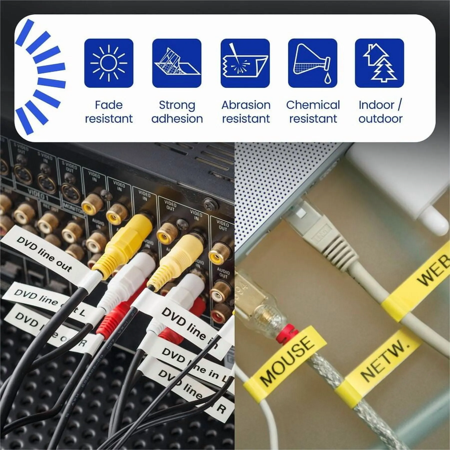 The Brother P-Touch Flexible ID Label Tape is perfect for creating clear and durable labels. With its bright yellow background and black ink, this tape is designed to withstand various environments. Measuring 24mm in width and 8 meters in length, it's ideal for both indoor and outdoor labeling needs.