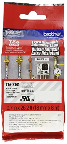 With extra-strength adhesive, this laminated tape is a remarkable breakthrough in labeling your most challenging surfaces. Extraordinary adhesive properties make it ideal for the toughest labeling tasks you face. You can use on uneven and rough-textured surfaces, surfaces exposed to harsh environments and even slippery painted metal and plastic surfaces. Tape is designed for Brother P-touch Labelers using 18mm (0.7") TZ or TZe tapes, including PT-1830, PT-1880, PT-2100, PT-2110, PT-2030, PT-2030AD, PT-2030VP, PT-D400, PT-D400AD, PT-D400VP, PT-2430PC, PT-2700, PT-2710, PT-2730, PT-2730VP, PT-D600, PT-D600VP, PT-H500LI, PT-P700, PT-P750W, PT-18R, PT-300, PT-310, PT-320, PT-1300, PT-1700, PT-1750, PT-1800, PT-1810, PT-1900, PT-1910, PT-1950, PT-1960, PT-330, PT-2410, PT-2500PC, PT-2600, PT-2610, PT-530, PT-550, PT-3600, PT-9200DX, PT-9200PC, PT-9400, PT-9500PC and PT-9600. Print color is black. Background is clear. Tape measures 18mm (0.7") wide x 8m (26-1/5') long.