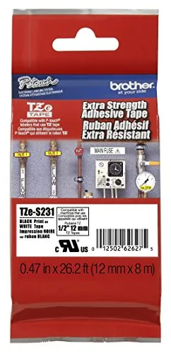 With twice the adhesive of Brother's standard TZe label tapes, this Genuine TZe Extra-Strength Laminated Label Tape is tough enough for almost any job. Apply with confidence knowing your label will stick there and stay there. A reliable choice for indoor and outdoor applications, confidently use the strong, durable tape in harsh environments and on rough/uneven surfaces. Like all P-touch TZe Label Tapes, it is designed to work seamlessly with variety of Brother P-touch Label Makers and engineered for effortless customization, long-lasting performance and impressive durability. Tape resists abrasion, water, many different chemicals and fading caused by sunlight. Use anywhere that needs extra sticking power like warehouses, schools, stockrooms, production floors and heavy equipment. Label tape is easy to apply and remains affixed to smooth, round and textured surfaces. Print color is black. Background is white. Sustainable packaging is made with responsibly sourced FSC-certified paper.
