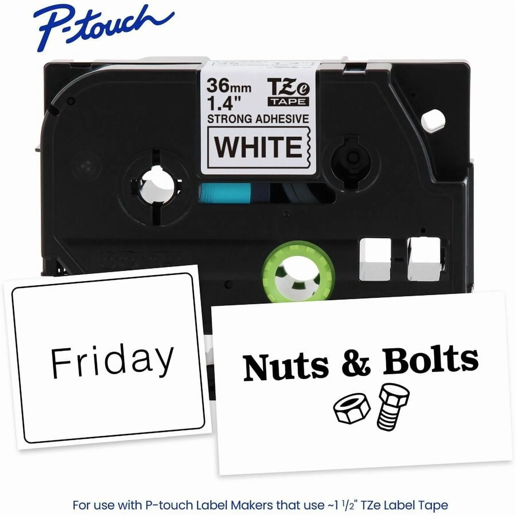BROTHER MOBILE, (ORDER INCREMENTS OF 6) 1.4 IN X 26.2 FT (36MM X 8M), BLACK INK ON WHITE EXTRA-STRENGTH ADHESIVE LABEL (WARNING: CANCER RISK FROM EXPOSURE TO BISPHENOL S (BPS)