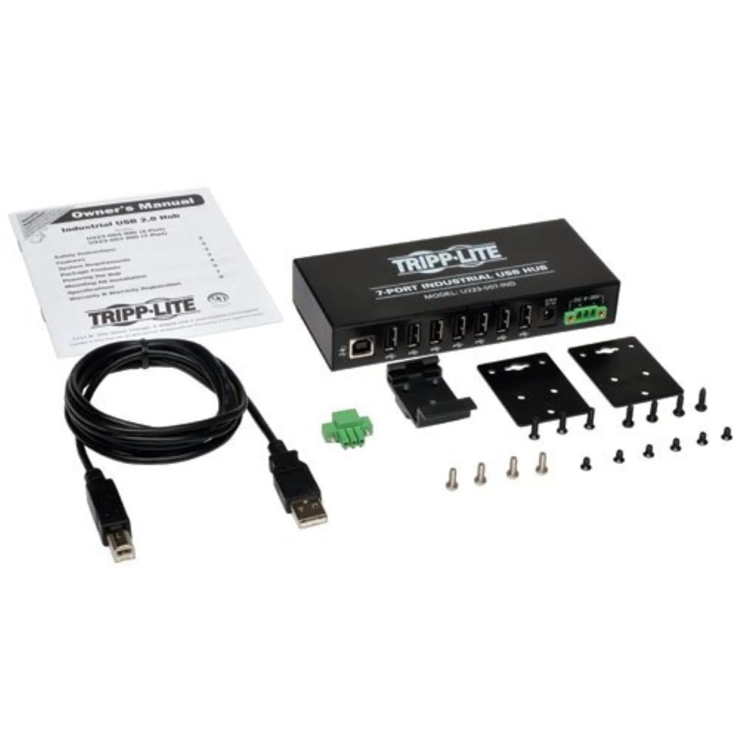 Tripp Lite's U223-007-Ind Is A Rugged, All Metal Constructed Usb 7-Port Hub For Use In Data Centers, Work Areas, And Industrial Applications. Can Be Mounted On A Wall Or Din-Rail With Included Mounting Hardware. Supports Hi-Speed Usb 2.0 Transfer Rates At 480Mbps, But Is Also Backward Compatible To Usb 1.1 ( 12Mbps ). Hub Is Bus-Powered Through The Computer Connection, Or Can Self Power With An External Adapter ( Not Included ) Or Via The Included 3-Wire Terminal Block Connector ( 9-36V ).
