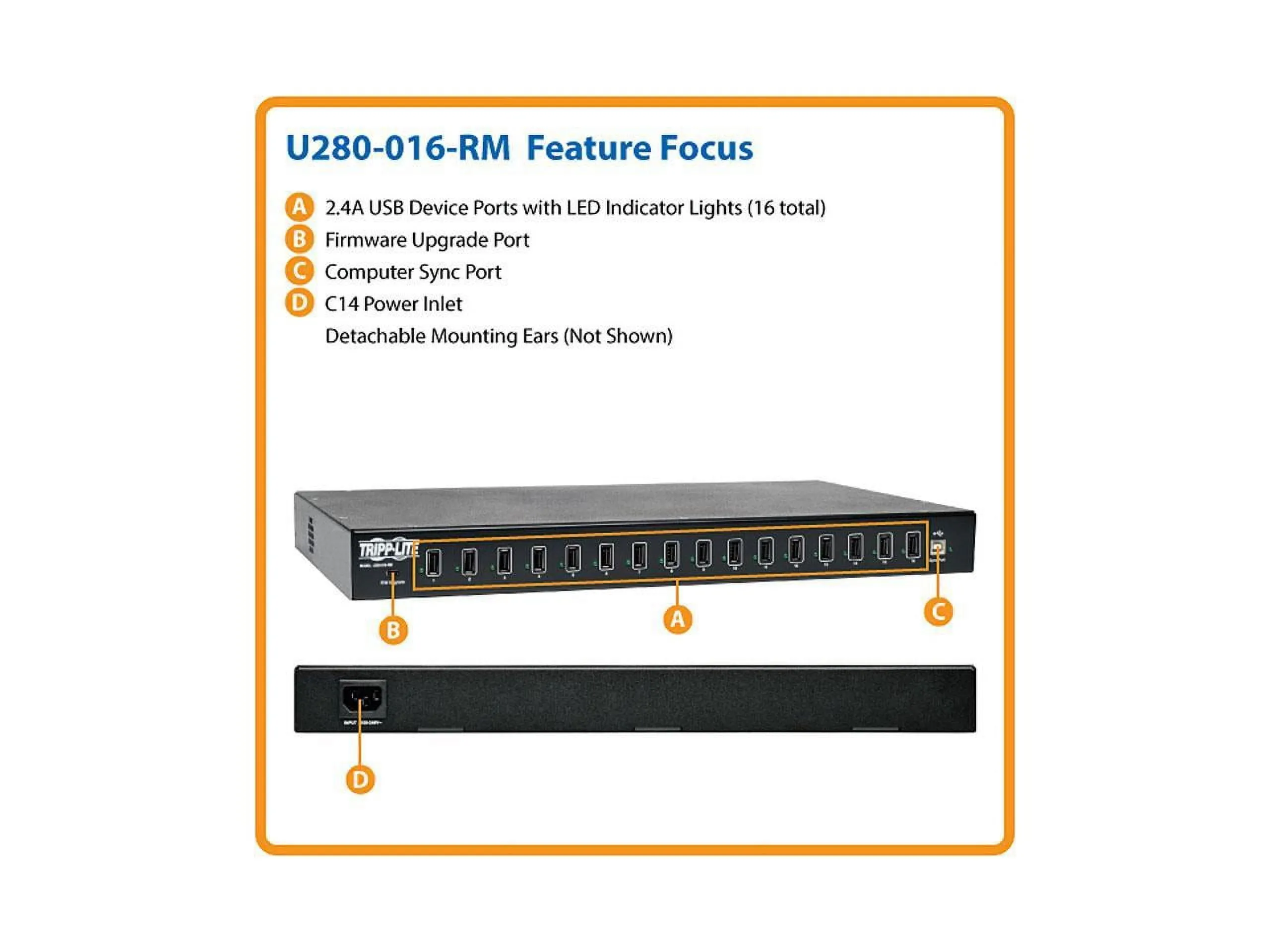 Tripp-Lite AC U280-016-RM 16PT USB Charging Station w Syncing Function 5V 40A