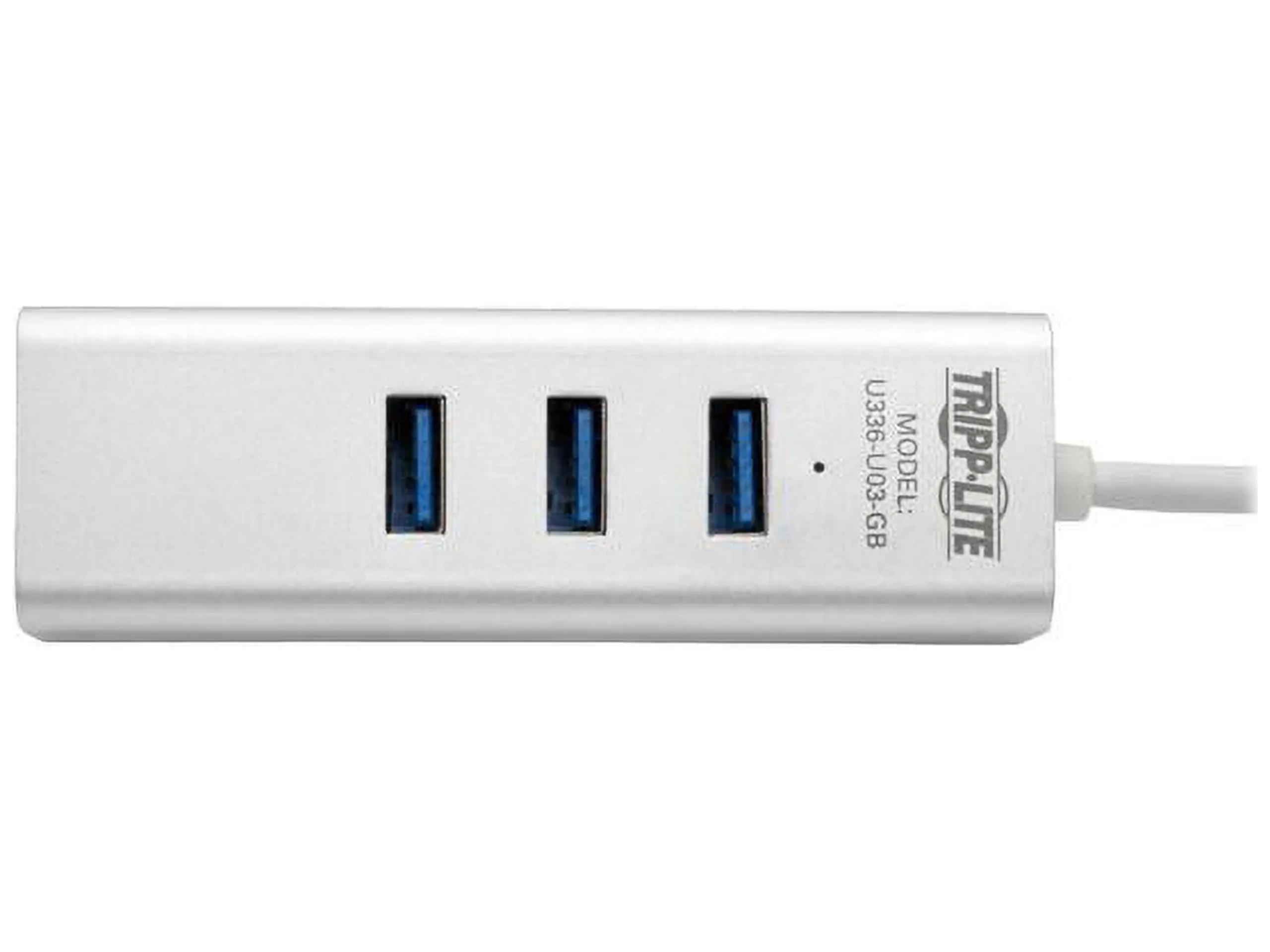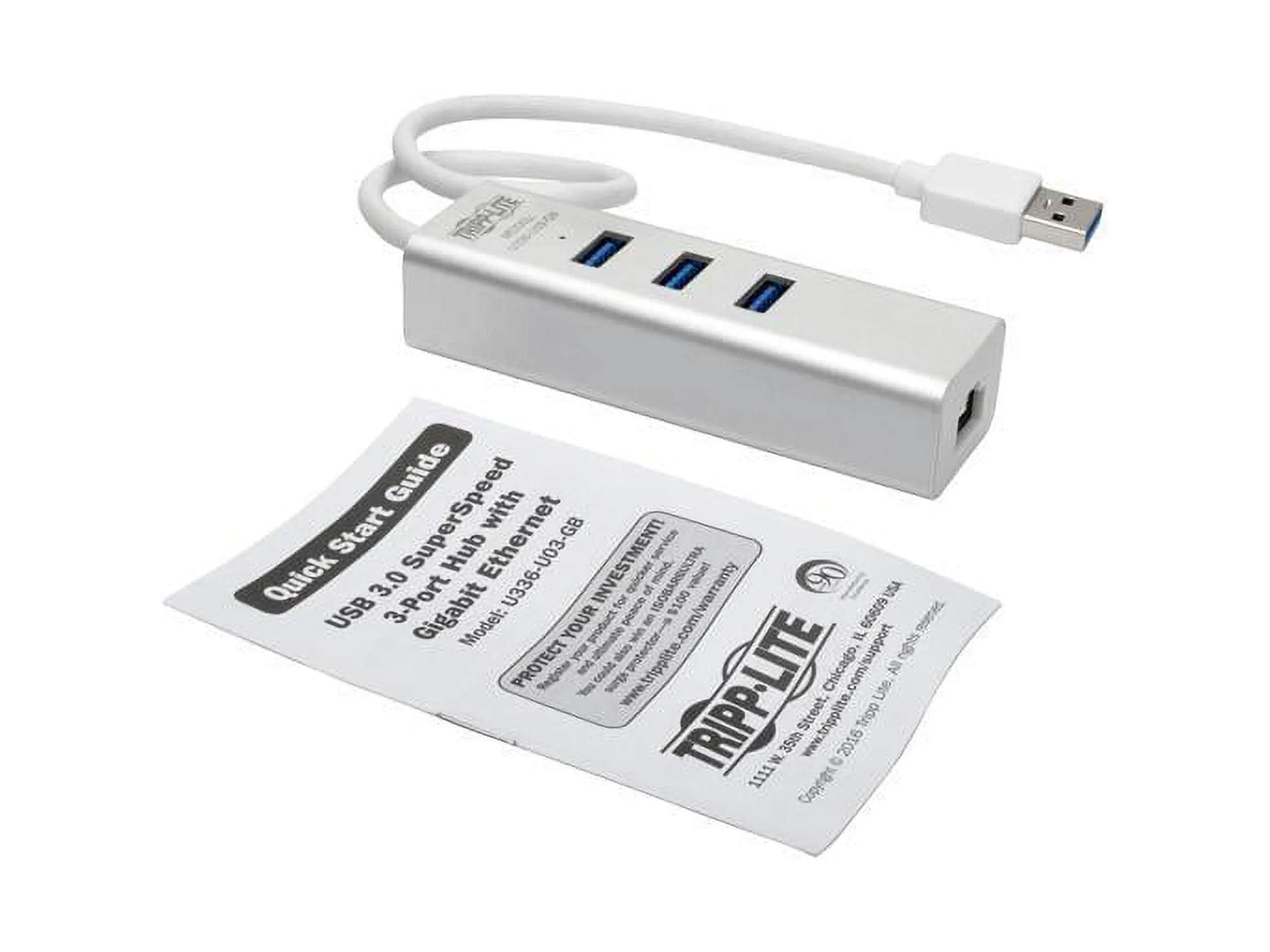 The U336-U03-GB USB 3.0 SuperSpeed to Gigabit Ethernet NIC Network Adapter allows you to turn a single SuperSpeed USB 3.0 computer port into an RJ45 Gigabit network port. It also creates three new additional USB 3.0 hub ports with each port supporting data transfer speeds up to 5 Gbps.