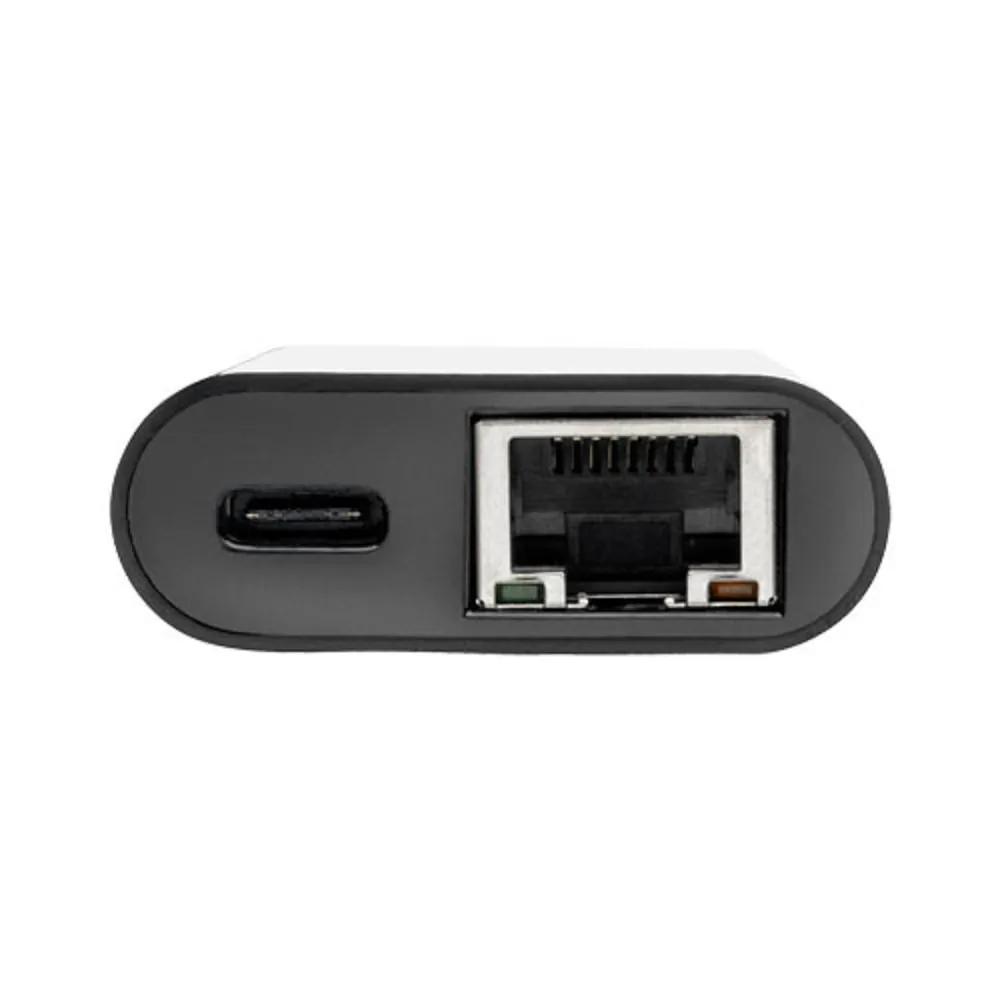 Accesses a Wired Gigabit Ethernet Network The RJ45 port offers access to a Gigabit Ethernet network when no Wi-Fi is available or when a wired connection offers faster speeds. Connect using a UTP cable (sold separately), and enjoy true 10/100/1000 Mbps Ethernet speeds for fast data transfers.Charges a Connected Device The USB-C Power Delivery (PD) port provides power and charging to the PD Charging-compliant device (such as a MacBook, Chromebook or Android smartphone) the USB-C network adapter is connected to. Connect the device?s AC wall charger to the USB-C PD port, which supports power input up to 60W.Built-In USB-C Cable Connects in Either Direction Connect the reversible USB-C plug to your source device?s USB-C or Thunderbolt 3 port. The fumble-free USB-C plug connects in either direction to ensure fast, easy connection every time.Ready to Use Right Out of the Package The plug-and-play USB to LAN converter requires no software, drivers or external power. The compact unit fits easily into a pocket, briefcase or laptop bag for connecting on the go. Plug it into your laptop for instant network connection.Typical Applications Access a wired Ethernet network in a location with no or spotty Wi-Fi Upload data from your notebook or download data from the Ethernet at true 10/100/1000 Mbps Ethernet speeds Charge your notebook or laptop by connecting its wall charger to the USB-C PD Charging portSystem Requirements Tablet, laptop, Chromebook, MacBook, smartphone or PC with USB-C or Thunderbolt 3 port Windows, Mac or Chromium operating systemPackage Includes U436-06N-GB-C USB-C to Gigabit Network Adapter with USB-C PD Charging?Thunderbolt 3, Black Owner?s manualUSB to LAN converter adds Gigabit Ethernet and USB-C charging ports to your laptop, MacBook or other compatible device. Connects you to a wired Ethernet network when no Wi-Fi is available Supports USB 3.1 Gen 1 for fast data uploads and downloads up to 5 Gbps Widely compatible with Windows, Mac and Chromium computers Powers and charges PD Charging-compliant devices, such as MacBooks and Chromebooks Easy installation with plug-and-play operation?no software requiredPHYSICAL Color BlackCERTIFICATIONS Certifications ROHS