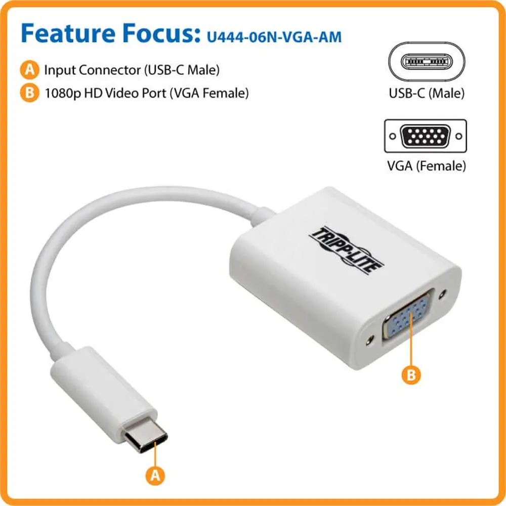 Tripp Lite USB C to VGA Video Adapter Converter1080p, M-F, USB Type C to VGA, USB-C to VGA, USB Type-C to VGA 6in - USB-VGA for Video Device, Graphics Card, Projector, Tablet, Smartphone, Ultrabook