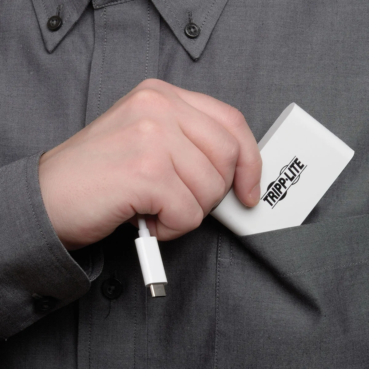 USB 3.1, generation 1 USB-C portable hub expands the potential of your tablet, laptop, MacBook, Chromebook, smartphone or PC's USB-C or Thunderbolt 3 port. Plug-and-play technology makes installation quick and simple - with no software or drivers to install. Fumble-free, reversible USB-C plug connects in either direction for a quick connection every time. Dual USB-A ports accept USB peripherals, such as a flash drive, mouse, keyboard or printer, and provide up to 0.9A each for charging smartphones and other mobile devices. They support fast USB 3.1 Gen 1 data-transfer rates up to 5 Gbps and are backward compatible with previous USB generations so you can continue using older peripherals while getting high-speed performance from new devices. Portable hub is perfect for adding a thumb drive and other USB peripherals and charging a mobile device all at the same time.