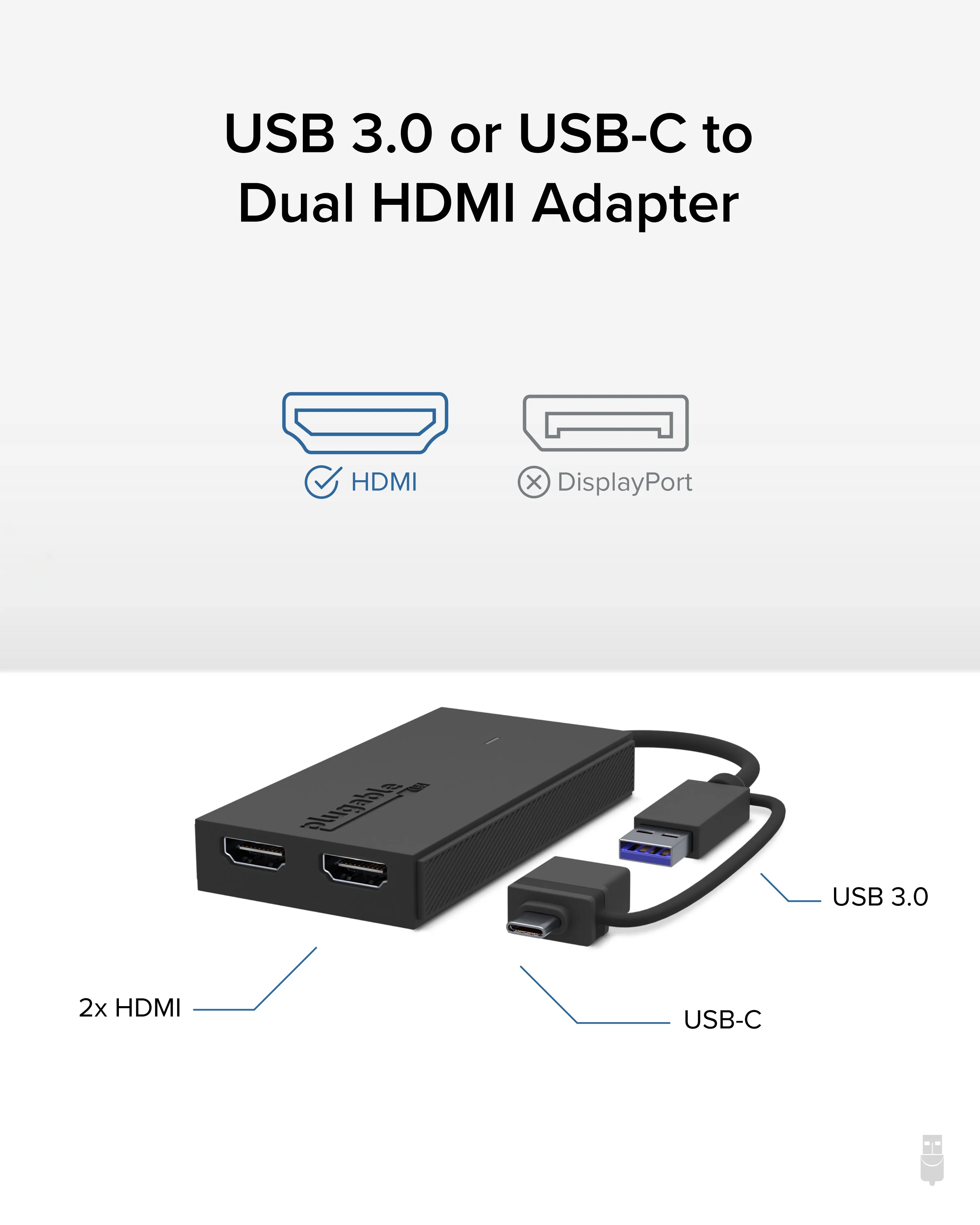 The Plugable USB-C to HDMI Graphics Adapter allows you to connect your USB-C enabled device to an HDMI display. Enjoy stunning 4K video output and hassle-free connectivity for presentations, gaming, or media streaming.
