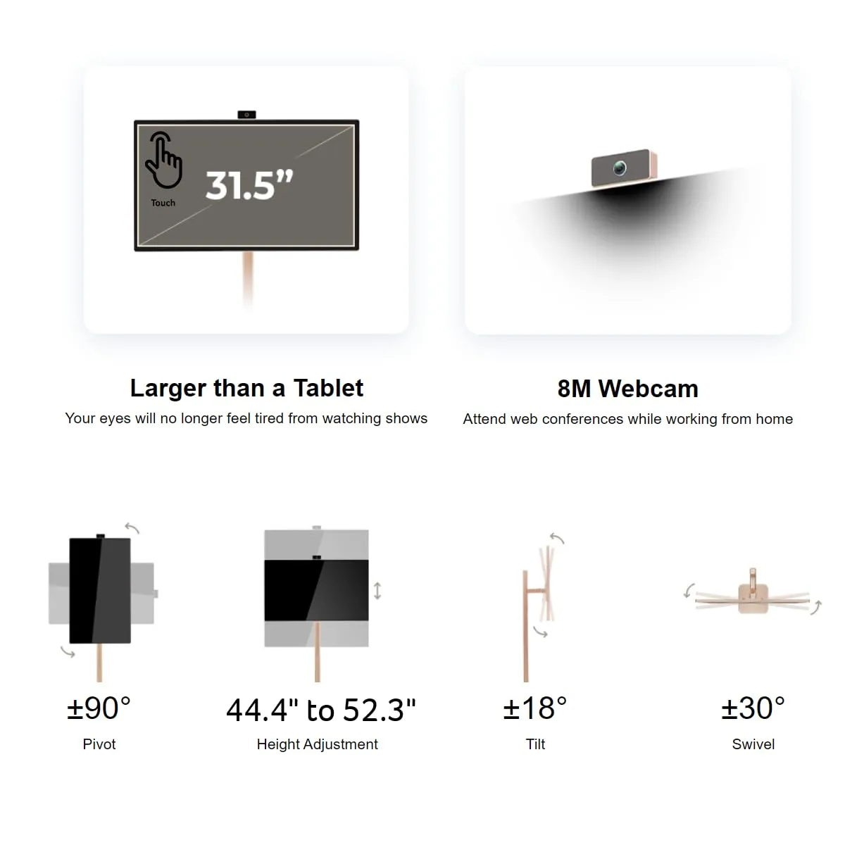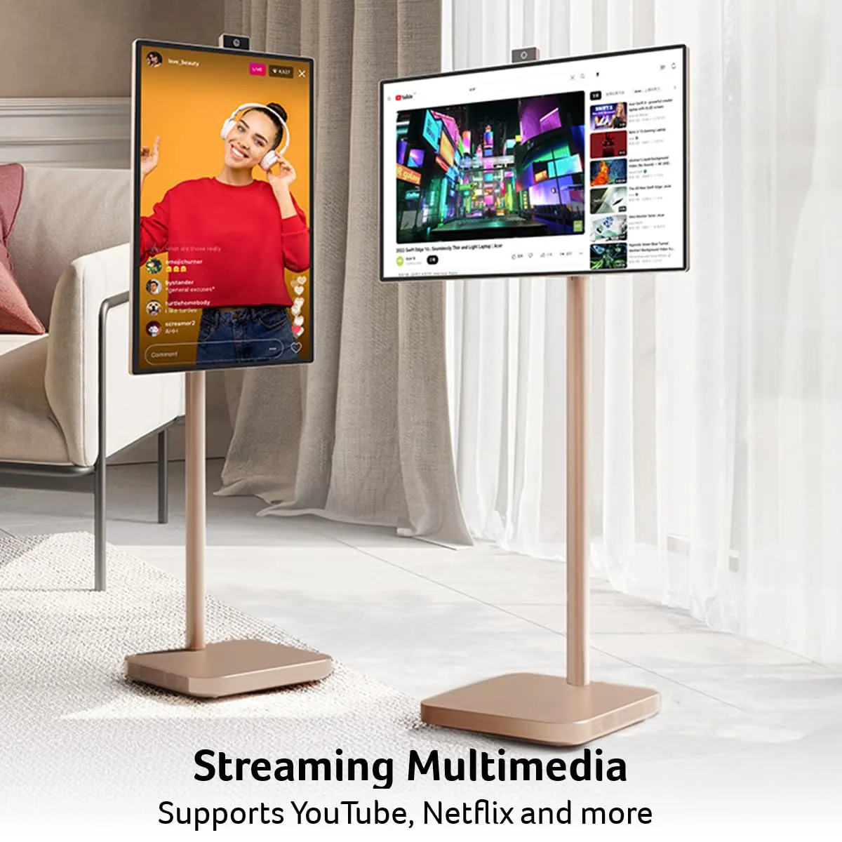 The Aopen S1 is a 31.5-inch semi anti-glare touchscreen monitor that delivers stunning visuals with its 3840 x 2160 resolution. Powered by an efficient 8-core 6nm CPU, it runs on Android, providing a smooth user experience. The monitor features a sleek rose gold design, built-in battery, and convenient moving wheels, making it ideal for versatile setups.