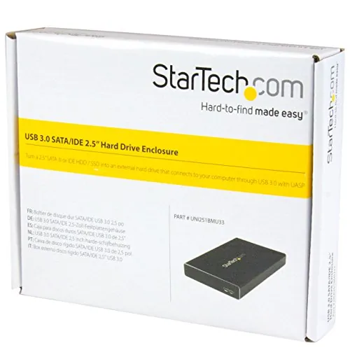 The UNI251BMU33 Universal 2.5in Drive Enclosure lets you turn a 2.5in SATA or IDE hard drive (HDD) or solid-state drive (SSD) into a portable USB 3.0 storage solution.