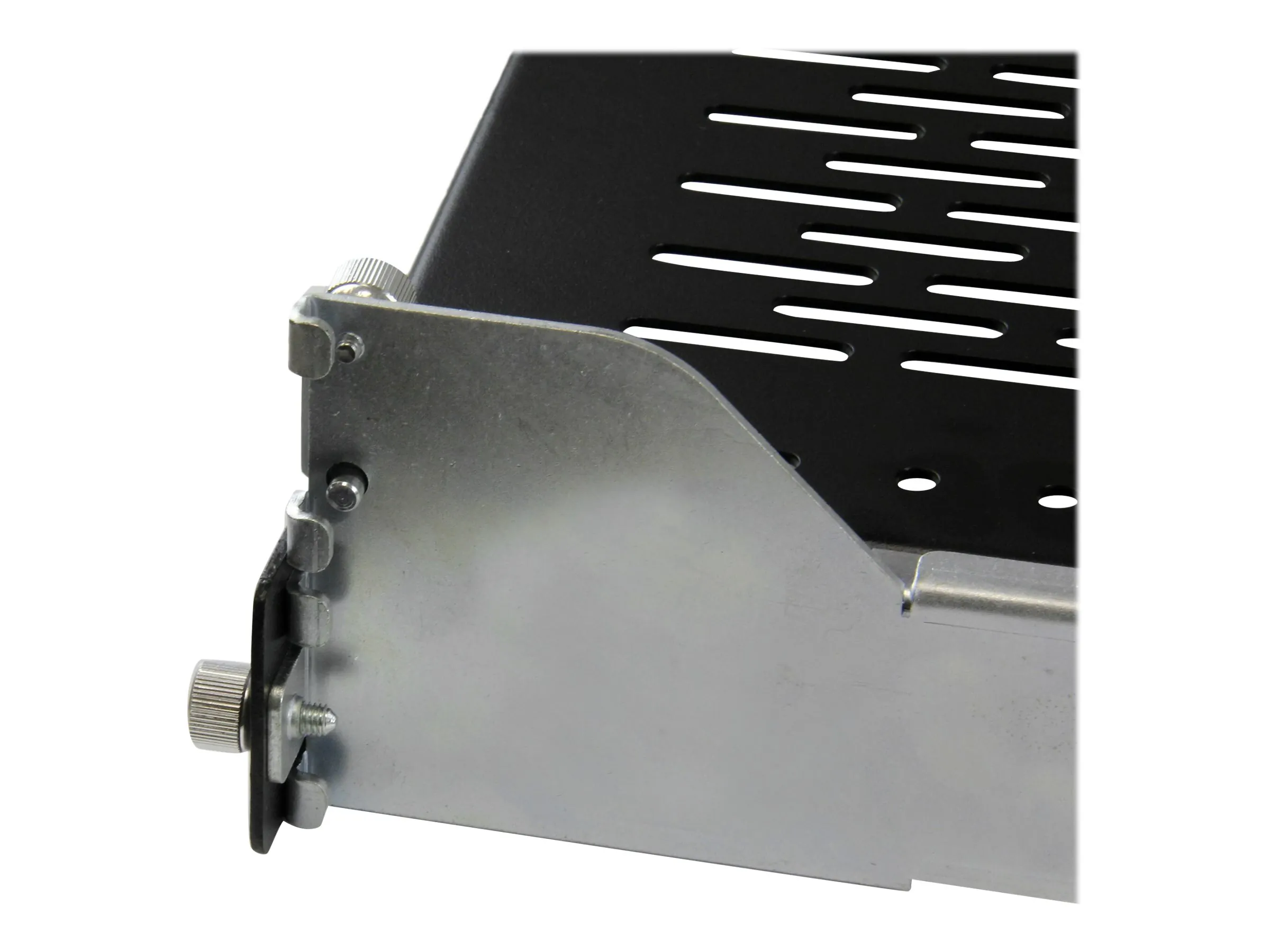 For ease in routing cables neatly through your rack, we've included a reversible cable management arm that can be attached to the back of the shelf, plus an adjustable bezel to keep your equipment where you want it on the shelf.