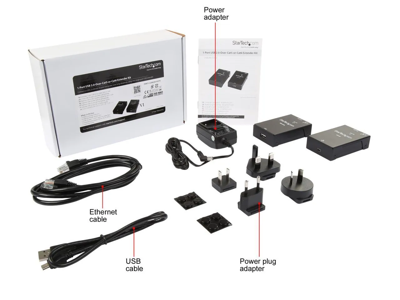 StarTech.com USB2001EXTV 1-Port USB 2.0-Over-Cat5-or-Cat6 Extender Kit - 165 ft.