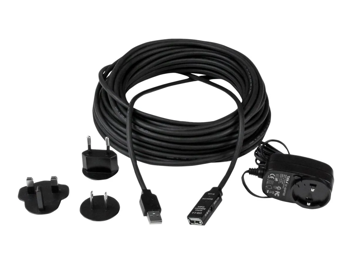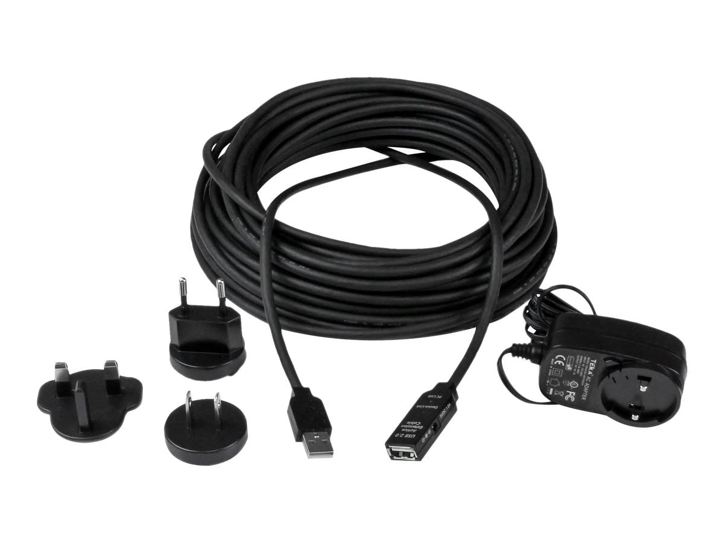 Up to 4 of these cables can be daisy-chained together, allowing for a total USB extension of up to 40-meters. If necessary, the USB device can be powered from a wall outlet using the Universal AC power adapter (provided with the cable).