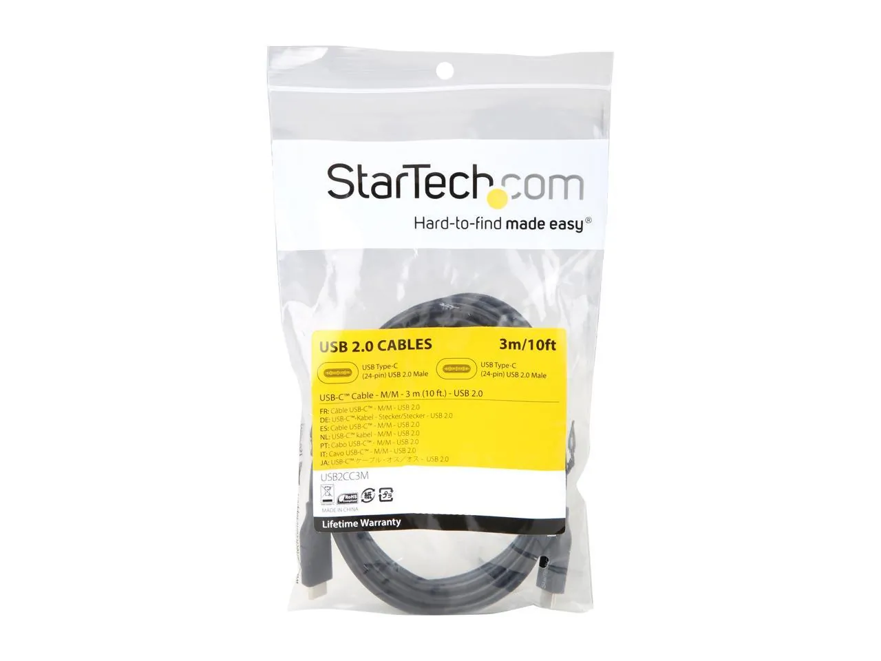 StarTech USB2CC3M 9.8ft USB-C to USB-C Cable - M/M - 3 m - USB 2.0