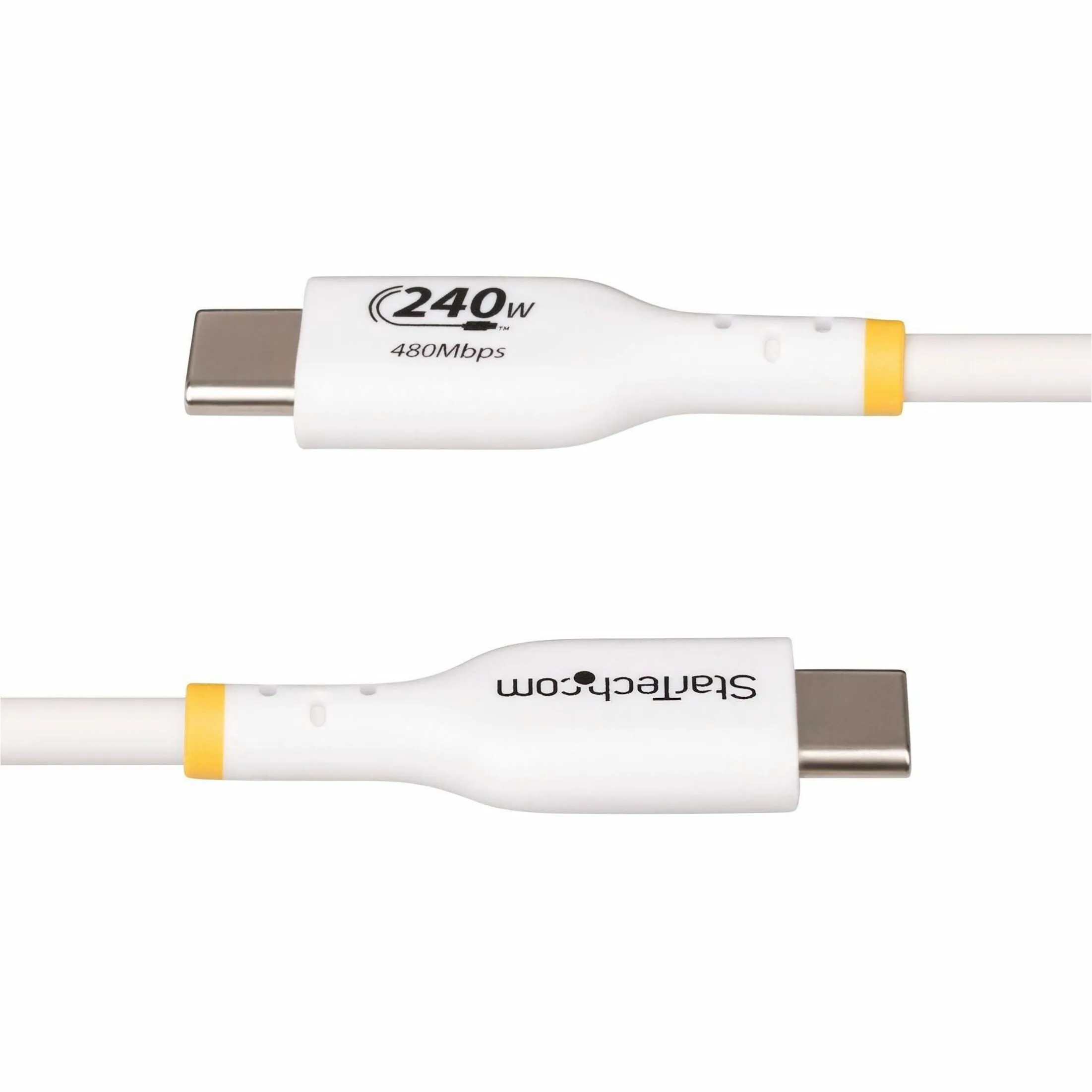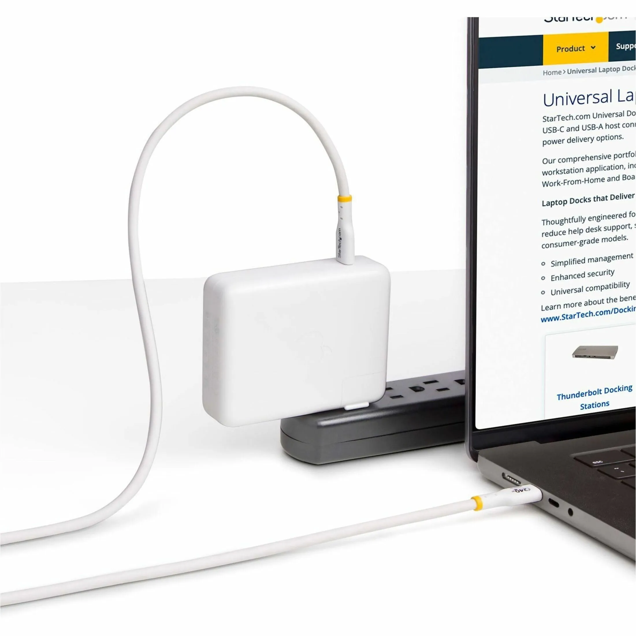 USB C Cable supports Power Delivery 3.1 Extended Power Range (EPR); Up to 240W at 48V; Ideal for highpower laptops including 16in MacBook Pro M3 Pro/M3 Max USBIF certified w/Emarker for consistent PD output; Use connector markings to identify specs ataglance Nickelplated connectors; 30AWG wire; Durable TPE Jacket w/shield protects from EMI 240W/5A PD 3.1 EPR; USB 2.0 TypeC (480Mbps); 6foot; White; 4mm (0.16in) O.D.; NOTE: USBC video (DP Alt Mode) is not supported