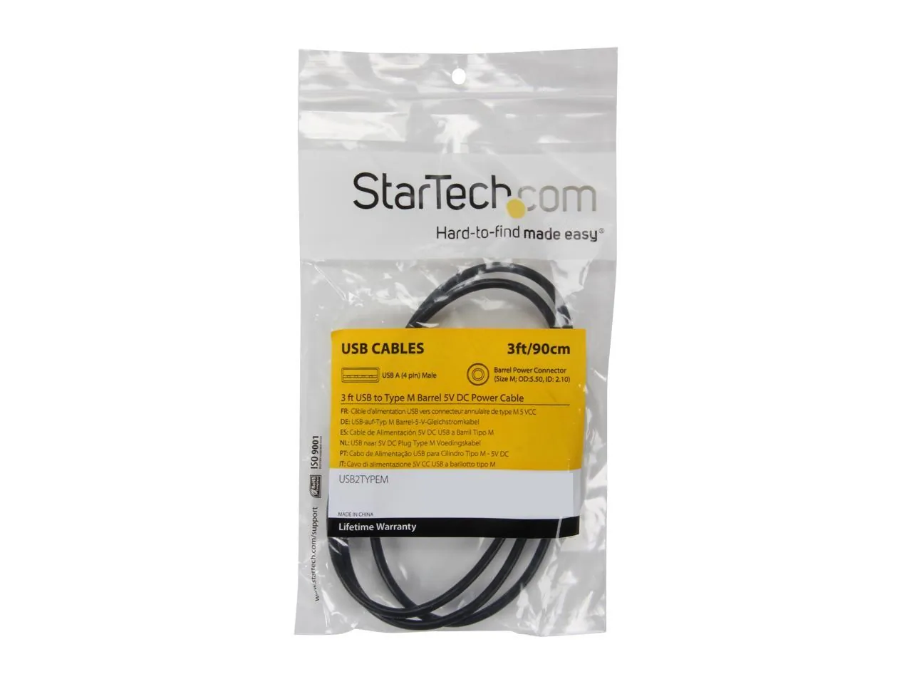 StarTech.com USB2TYPEM Black USB to Type M Barrel 5V DC Power Cable