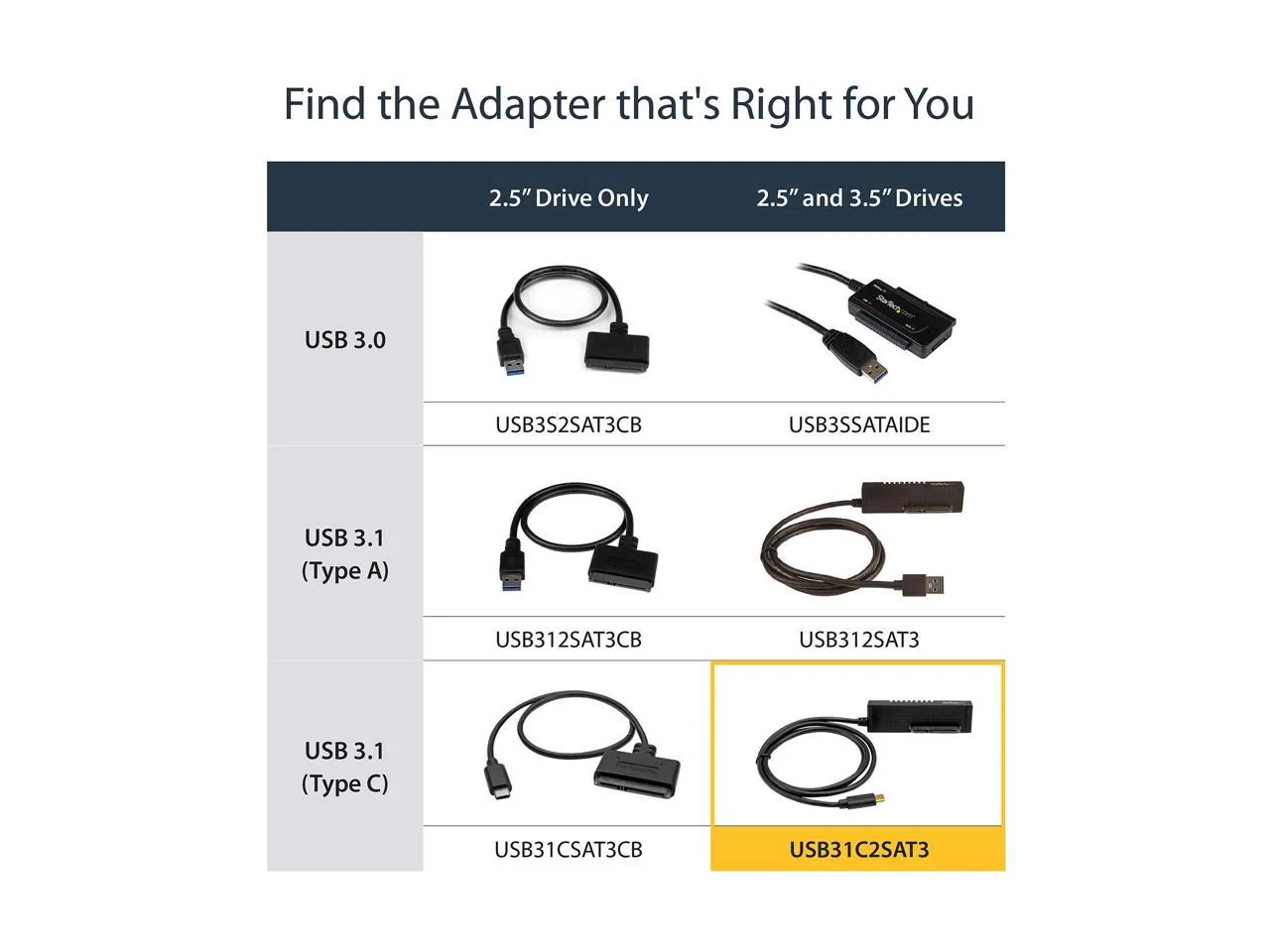StarTech USB31C2SAT3 USB C to SATA Adapter Cable - for 2.5 / 3.5r SATA Drives - 10Gbps - USB 3.1 - SATA to USB Adapter - External Hard Drive Cable