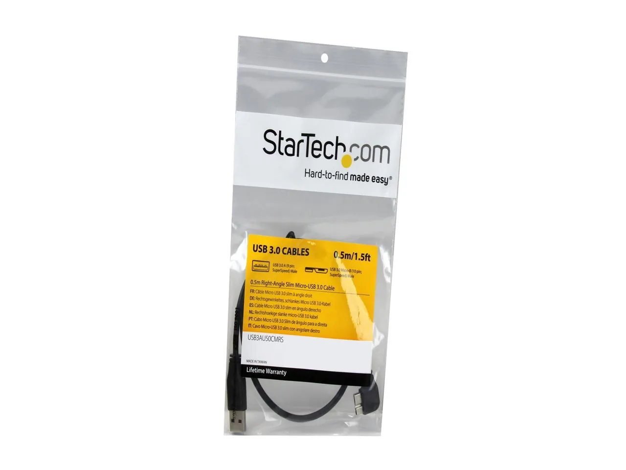 StarTech.com 0.5m 20in Slim Micro USB 3.0 Cable - M/M - USB 3.0 A to Right-Angle Micro USB - USB 3.1 Gen 1 (5 Gbps)