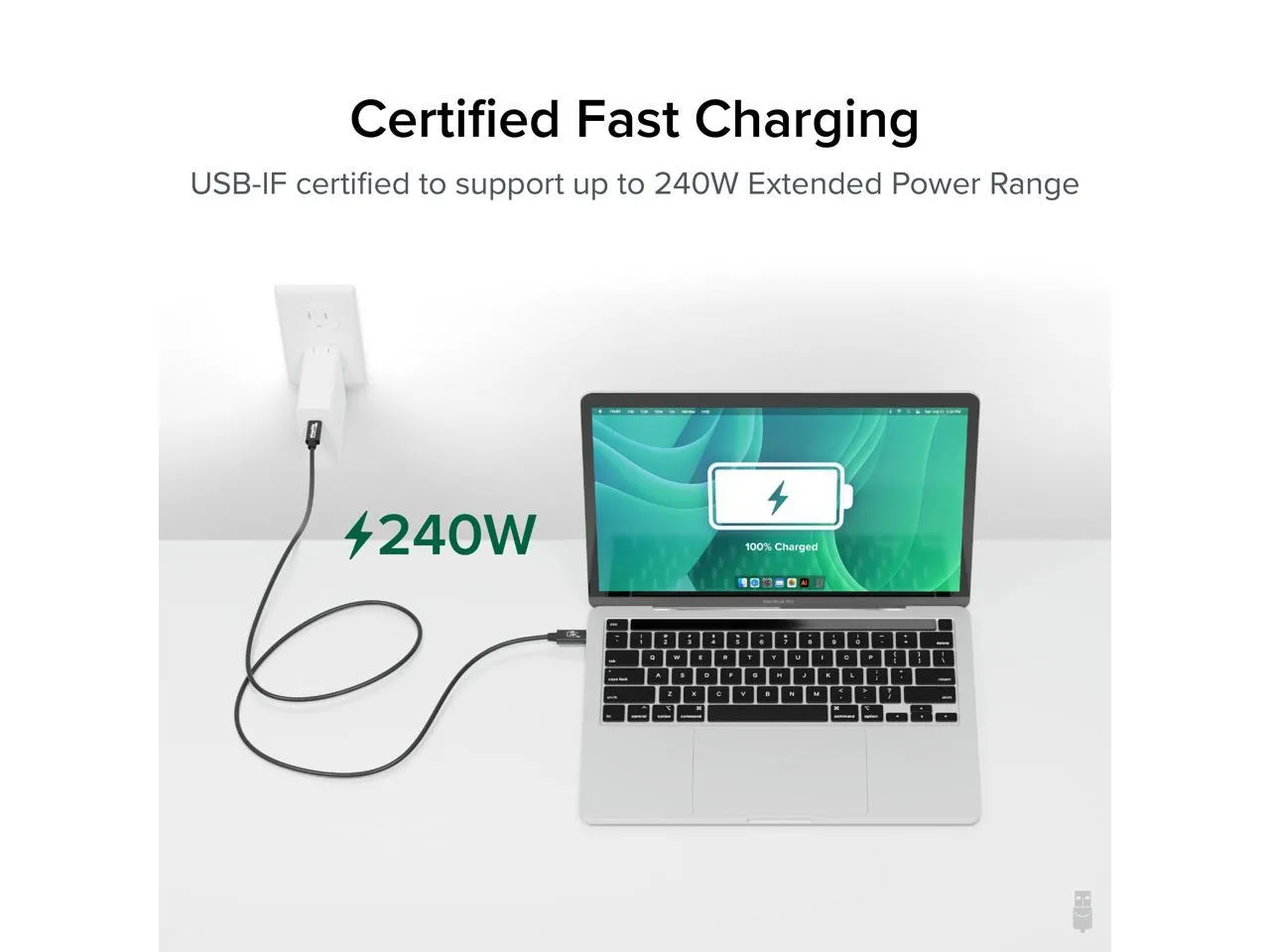 With USB-IF certification, you can trust in the quality and safety of your charging needs, delivering up to 240W of power for your devices.
