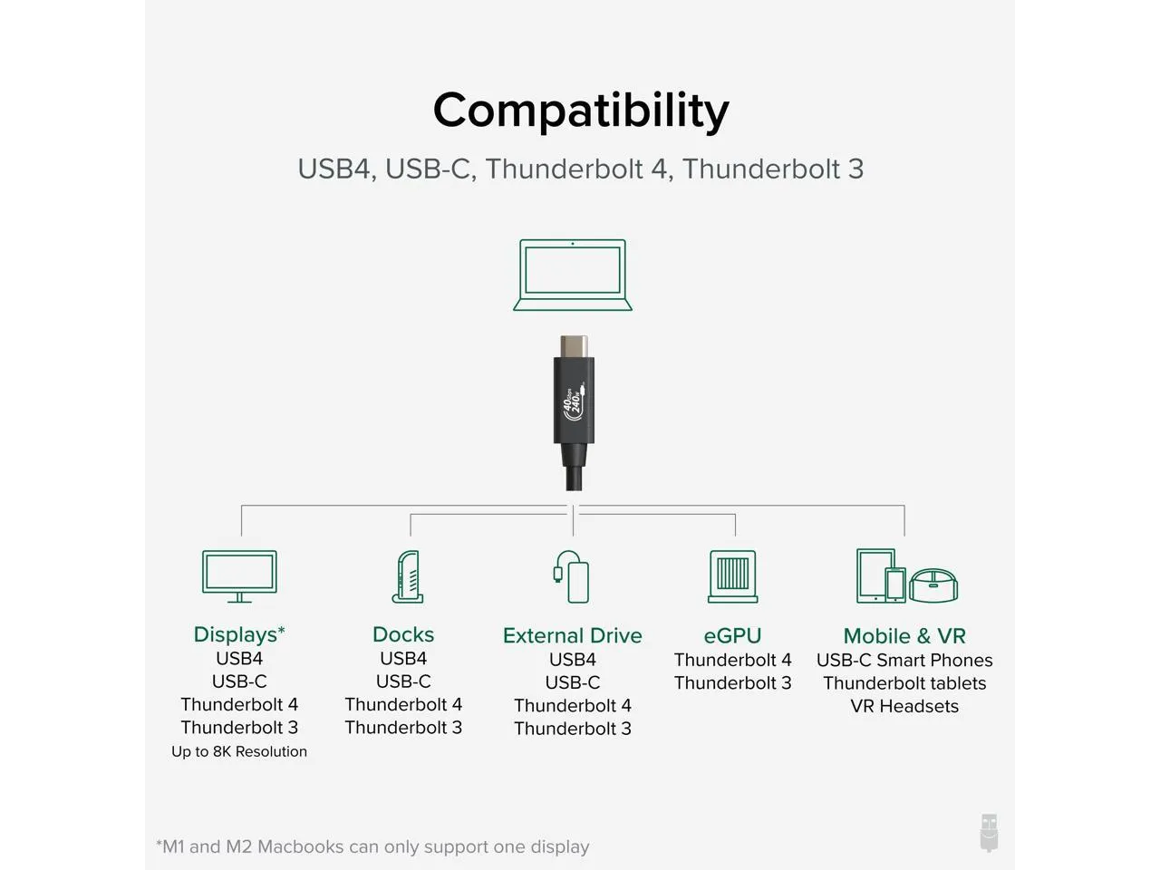 • Compatible with USB 4, Thunderbolt 4, and Thunderbolt 3 standards.