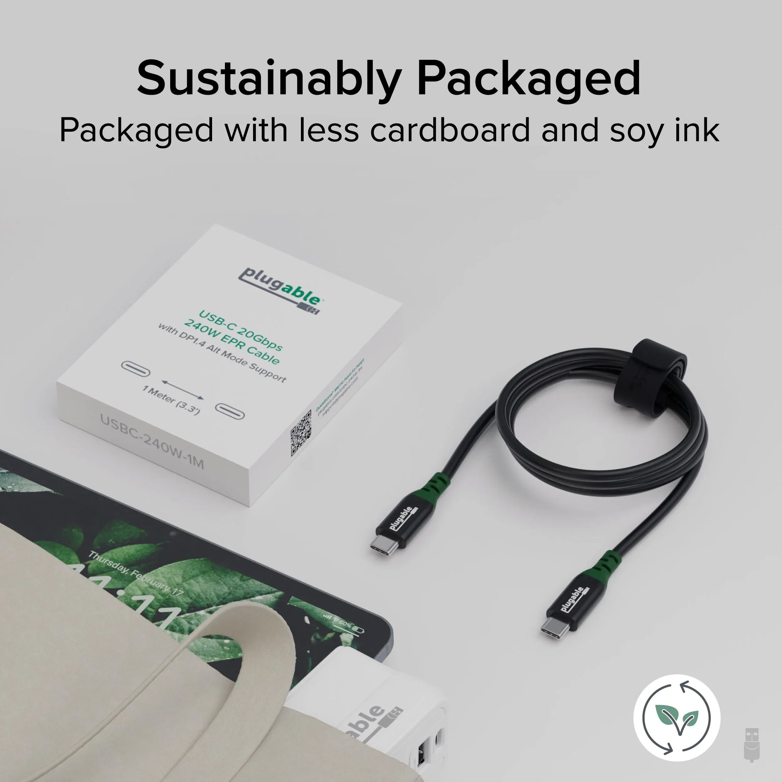 The Plugable USB-C 240W EPR Cable is designed to provide efficient power delivery and high-speed data transfer. With up to 240W of power output, this cable is perfect for charging laptops, tablets, and other USB-C devices quickly and efficiently.