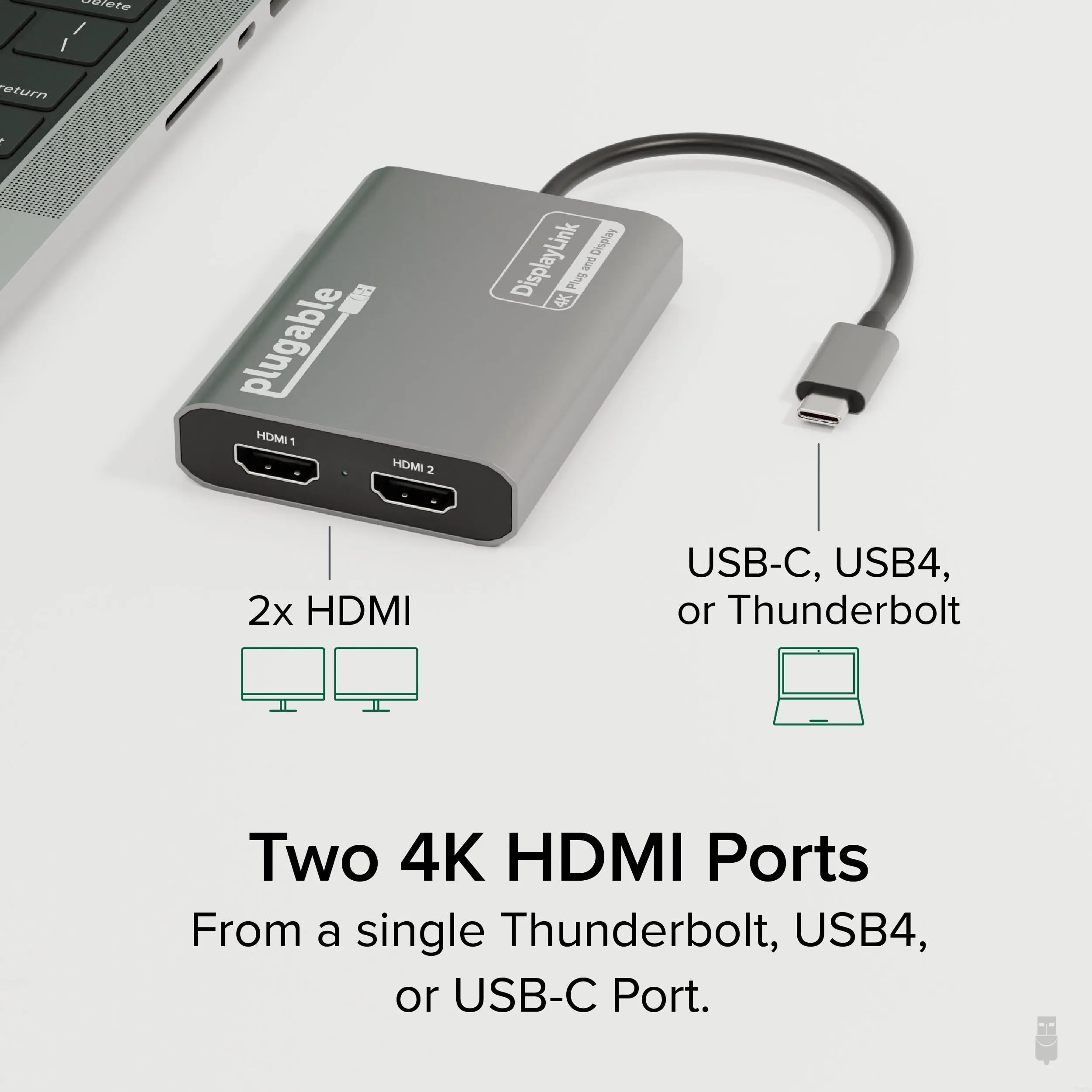 Experience high-definition video streaming with the Plugable USB-C to Dual HDMI Adapter. This innovative adapter allows you to connect two HDMI displays to your USB-C device. Perfect for multitasking, presentations, or extending your workstation.