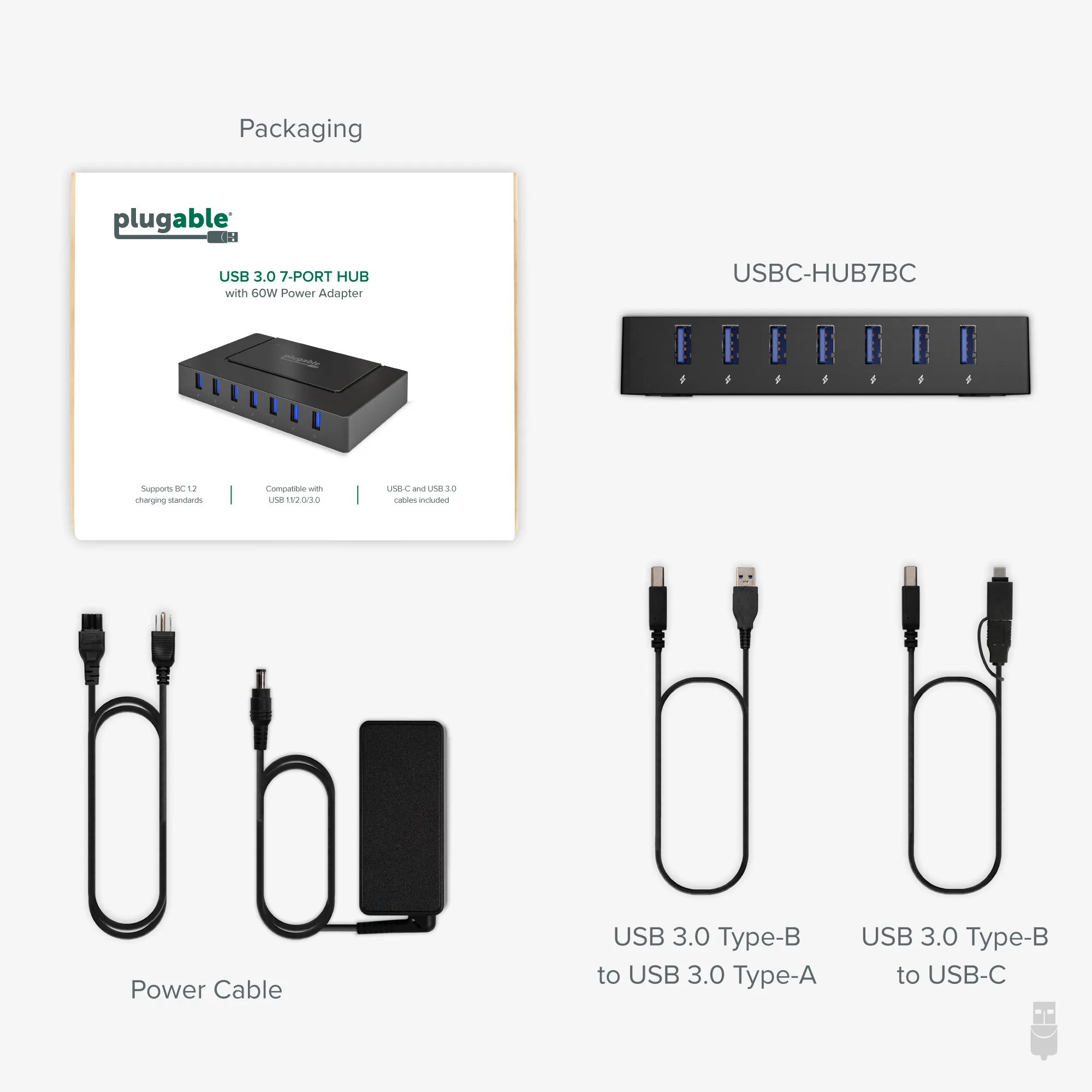 PLUGABLE 7-IN-1 USB CHARGING HUB WITH DATA TRANSFER FOR LAPTOS WITH USB-C OR USB