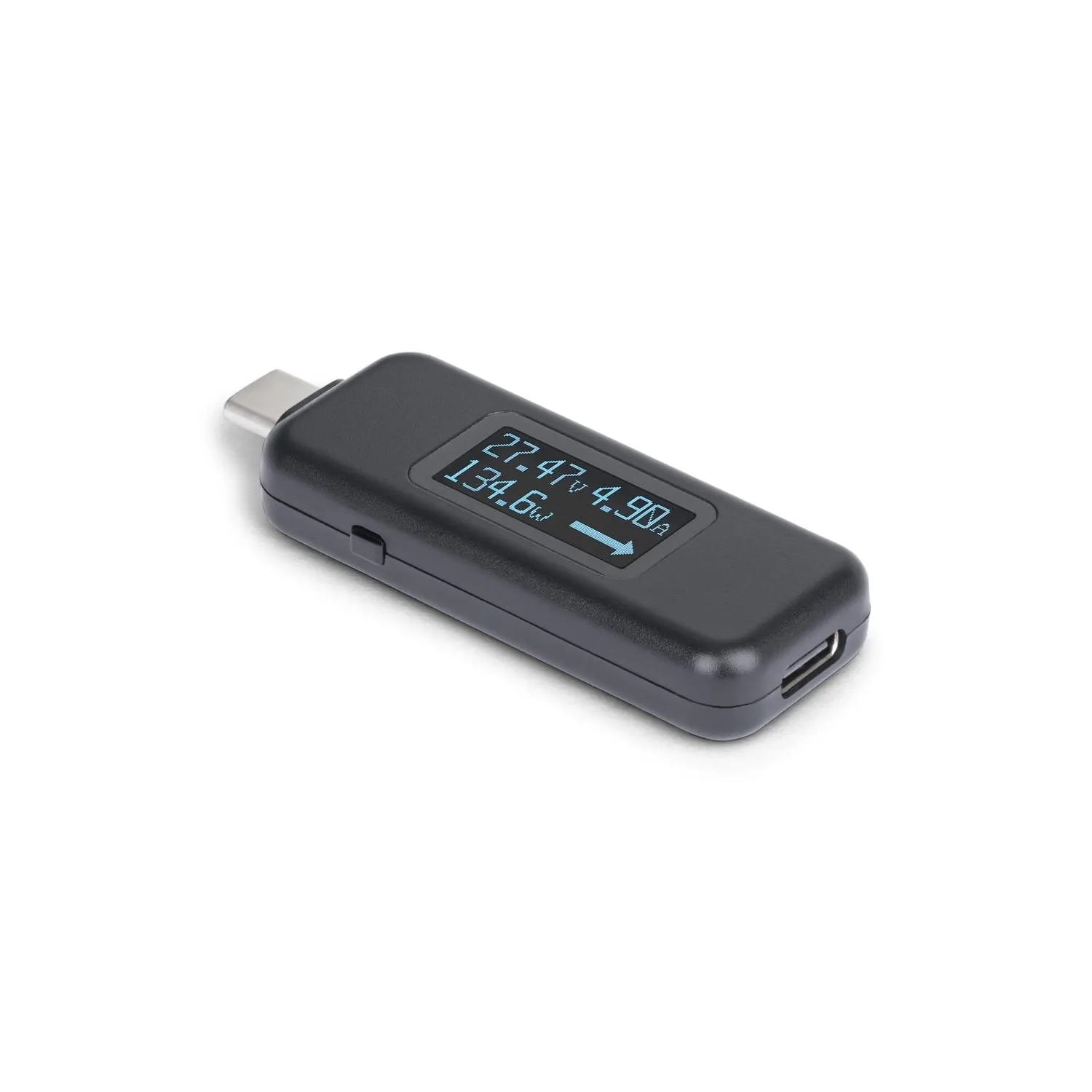 Compact Bi-Directional USB-C Power Tester measures Voltage/Current/Wattage; Digital OLED display w/180-degree flip rotation - Portable design ideal for traveling IT Pros; Diagnose power issues between USB-C docking stations/chargers/hubs/peripherals; Test USB-C cables to ensure full power from USB-C sources - USB data pass-thru up to 10Gbps including DP Alt Mode video - 4.5V-50V/50mA-6.5A operating range and 240W USB Power Delivery 3.1 EPR; Note: Not compatible with Thunderbolt 3 devices