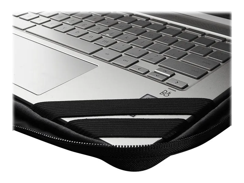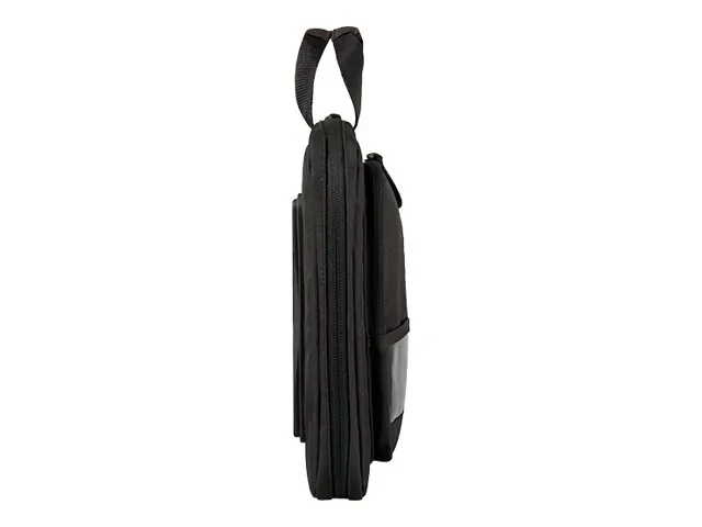 Laptop Case features secure-fit straps that secure your 13.3" Chromebook or laptop while in the case to prevent accidental drops. Antimicrobial coating prevents the growth of bacteria. Fabric is coated in a water-repellent to protect from mishaps. Front window offers a convenient location to display your ID. Durable track guards are located on the back panel. Large front pocket offers a handy space to store your laptop charger.