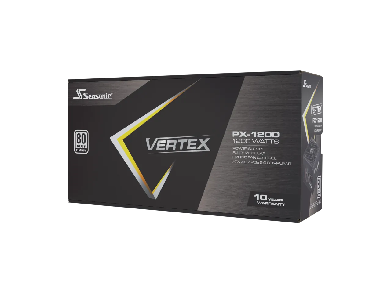 The Seasonic VERTEX PX-1200 is a top-of-the-line power supply unit designed for gaming and high-performance systems. With a robust 1200W power output, this PSU meets the demanding requirements of modern components while maintaining exceptional efficiency. It is 80+ Platinum certified, ensuring that it delivers a high level of power efficiency and stability.