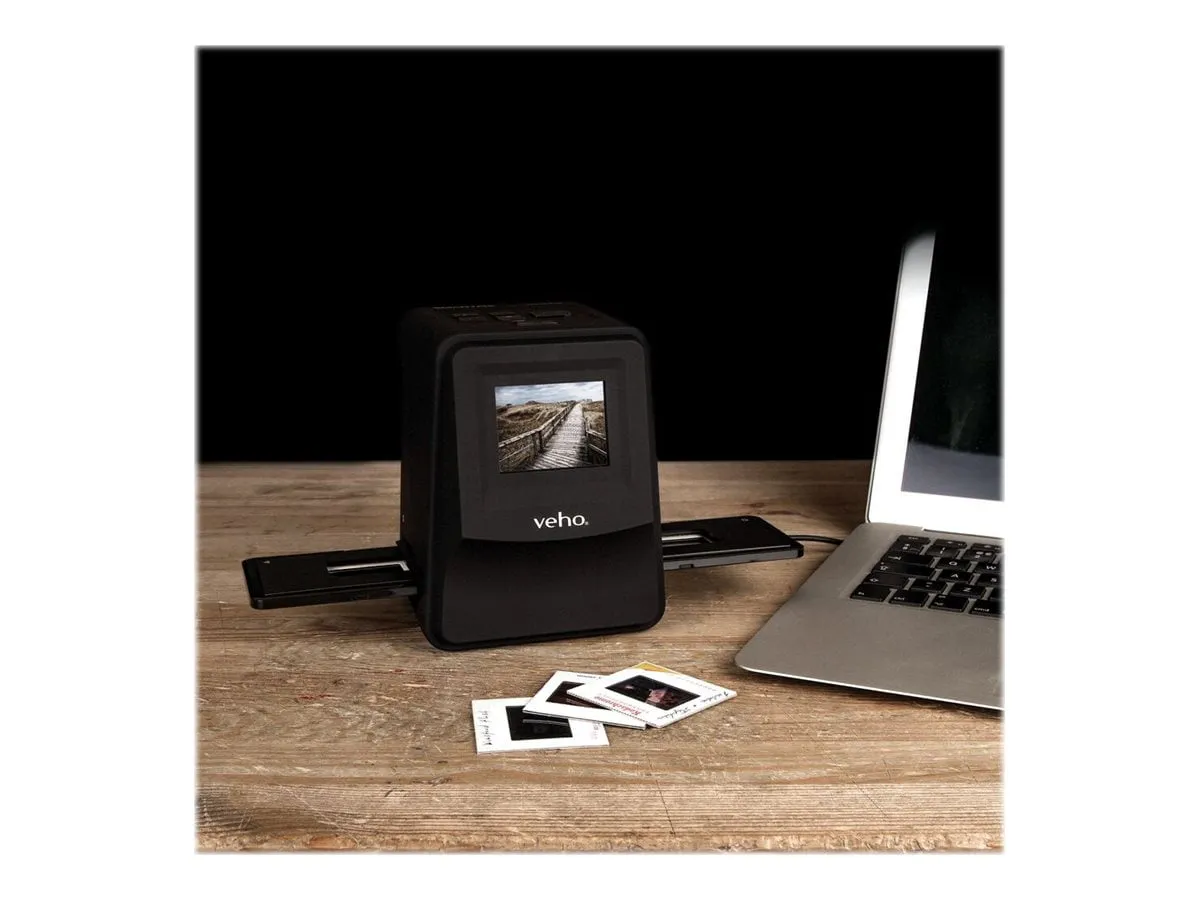 The VEHO SMARTFIX Portable 14MP Film & Slide Scanner is a versatile device designed for digitizing your cherished negative films and photographic slides. With its compact design, this scanner allows you to easily convert your old memories into digital files with high-resolution quality.