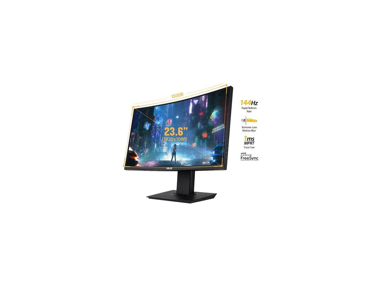 ASUS TUF Gaming VG24VQ 24" (23.6" Viewable) Full HD 1920 x 1080 1ms MPRT 144Hz 2 x HDMI, DisplayPort AMD FreeSync Asus Eye Care with Ultra Low-Blue Light & Flicker-Free Backlit LED Height Adjustable Curved Gaming Monitor