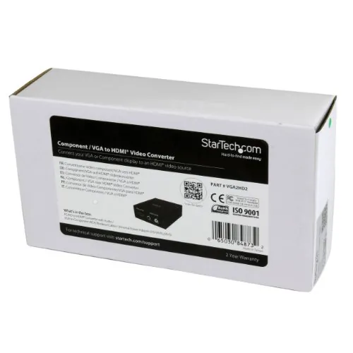 The VGA2HD2 Component/VGA to HDMI converter is backed by a StarTech.com 2-year warranty and free lifetime technical support.