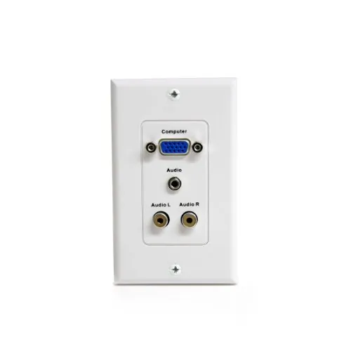 The VGA Wall Plate with Audio Connections provides easy access to your VGA and audio connections, ensuring a tidy and professional setup. Designed to accommodate various multimedia needs, this wall plate features both VGA and audio connections, making it perfect for home theaters, classrooms, or conference rooms.