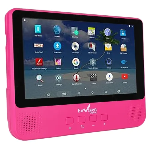 Envizen 2-in-1 Android Tablet + DVD Player - Quad-Core 1.3GHz 1GB16GB 9 1024x600 Touchscreen Android 5.1 (Pink)