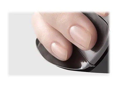 WORLDS FIRST MOUSE WITH GROOVED BUTTONS,YOUR FINGERTIPS REST IN A SHALLOW GROOVE