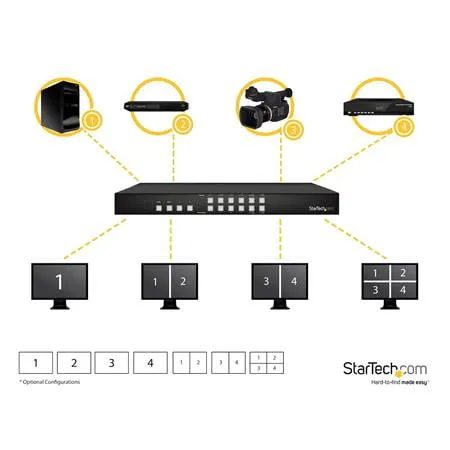 SHARE AND SWITCH FOUR DISTINCT HDMI AUDIO/VIDEO SOURCES BETWEEN FOUR HDMI DISPLA