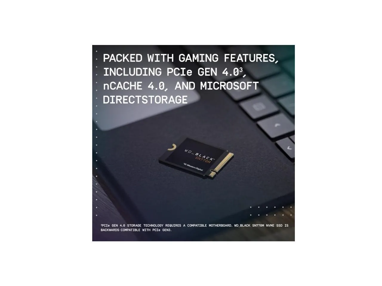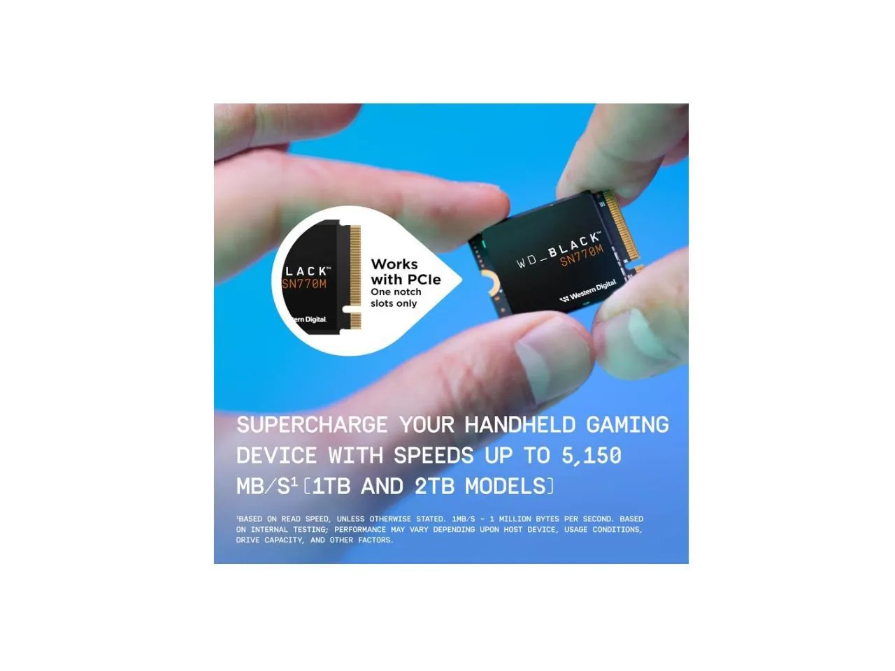 The WD_BLACK 1TB SN770M M.2 2230 NVMe SSD is designed specifically for handheld gaming devices. With blazing speeds of up to 5,150MB/s, it utilizes advanced TLC 3D NAND technology, making it an ideal choice for enhancing your gaming experience on platforms such as Steam Deck and Microsoft Surface.