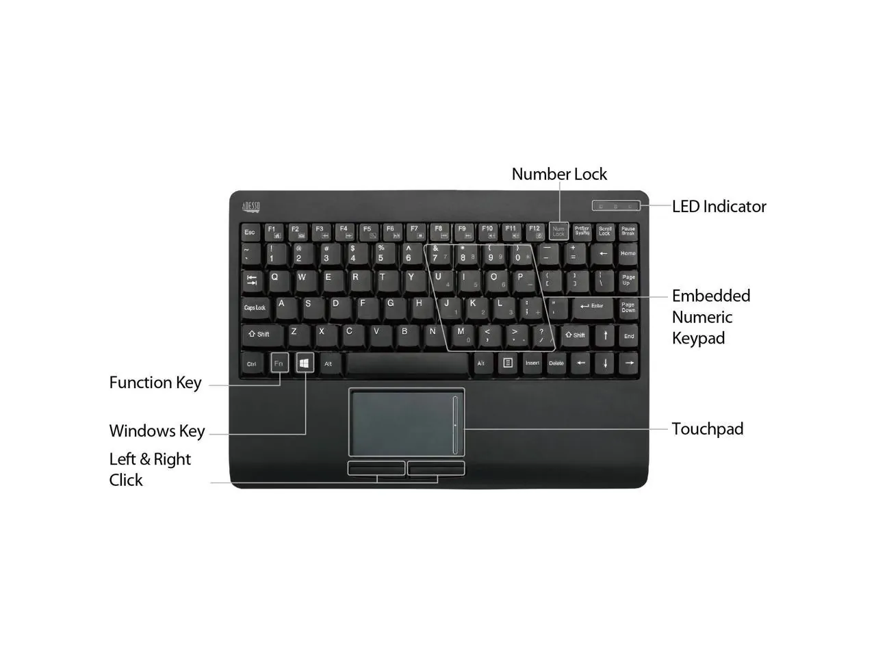 This 2.4GHz wireless device fits perfectly with your computer and allows you to work freely with no space constraints of wires, offering 30 feet (10m) of wireless freedom. Featuring a GlidePoint touchpad by Cirque, the WKB-4110 supports essential gestures such as scrolling, tap to click, and dedicated left and right click buttons, all with pinpoint precision. The Power ON/OFF Switch allows users to turn keyboard power off when keyboard is not in use, saving and extending battery life. The Connect button quickly makes keyboard s 2.4GHz RF signal available for simple pairing to receiver. The quiet membrane keys offer you fast and comfortable typing and a lifecycle of more than five million keystrokes per key.