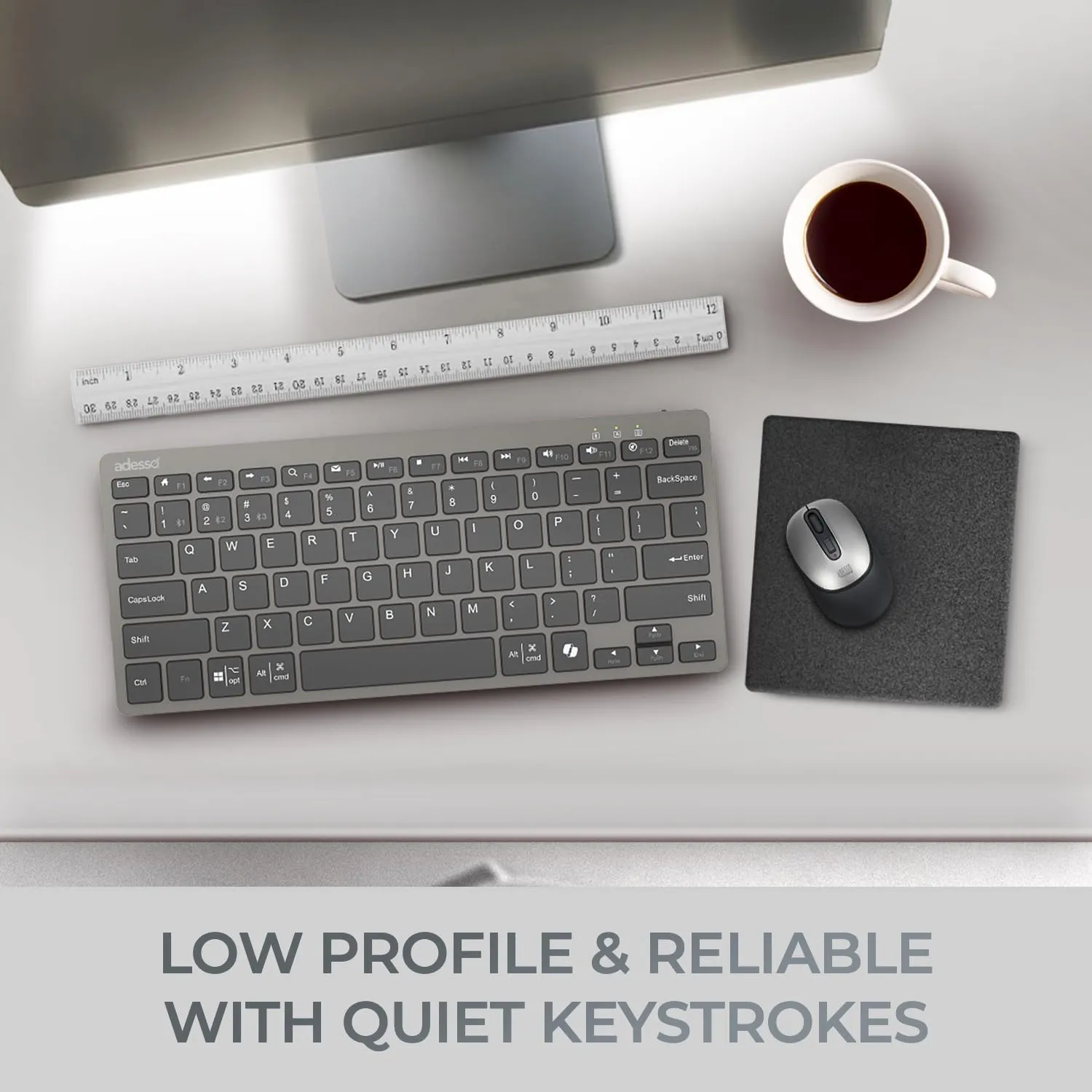 The Adesso WKB7000 is a mini scissor switch keyboard with a CoPilot AI hotkey that has the capability of working wirelessly through bluetooth and is built to make handling your daily computer tasks easier. This sleek keyboard uses switchesthat provide a more quiet, tactile and snappy response when typing. The Adesso WKB7000 is able to function throughbluetooth in 3 different channels to able to switch between them. The Copilot AI hotkey on your keyboard providesinstant access to an advanced AI assistant designed to assist you. The WKB7000 delivers a smooth and responsive typing experience with it's scissor switch technology. This Bluetooth keyboard offers the freedom to use your keyboard at up tothree Bluetooth devices. This comes equipped with a Polymerrechargeable battery that is easily recharged by connecting the TYPEC