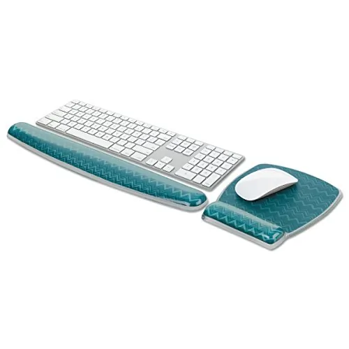 Enhance your typing experience with our Ergonomic Gel Keyboard Wrist Rest. Designed with a stylish green chevron pattern, this wrist rest provides the comfort and support you need during long hours of typing.