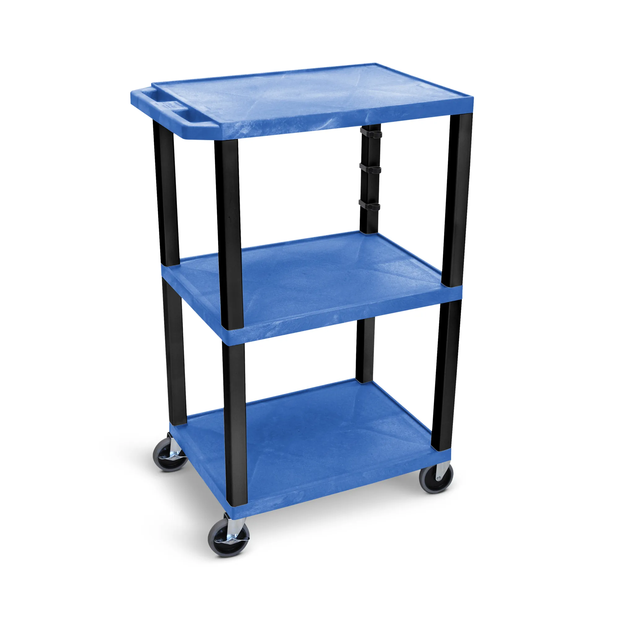 The Luxor Blue Tuffy 3 Shelf AV Cart is constructed from durable recycled molded plastic, making it resistant to scratches, dents, rust, and stains. Each of the three shelves measures 1.5" in thickness and features a .25" retaining lip along with a textured surface to prevent items from slipping during transit.