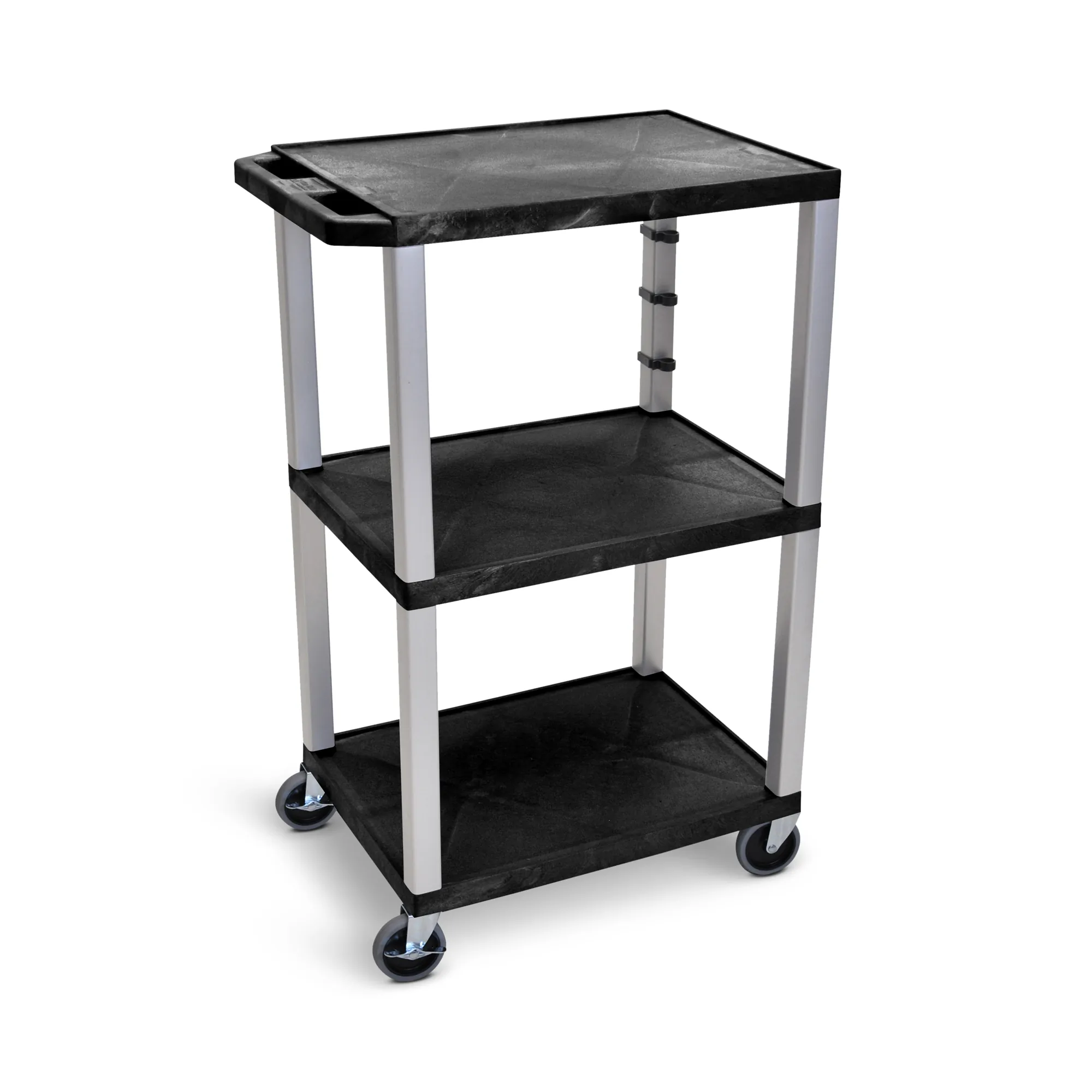 The Luxor 3-Shelf AV Cart is expertly crafted from recycled molded plastic, ensuring it's both eco-friendly and extremely durable. This cart is designed to withstand the rigors of everyday use without scratching, denting, rusting, or staining.